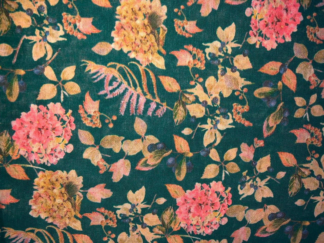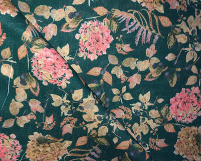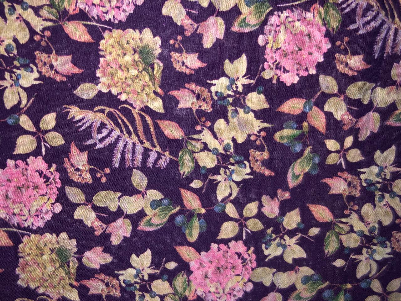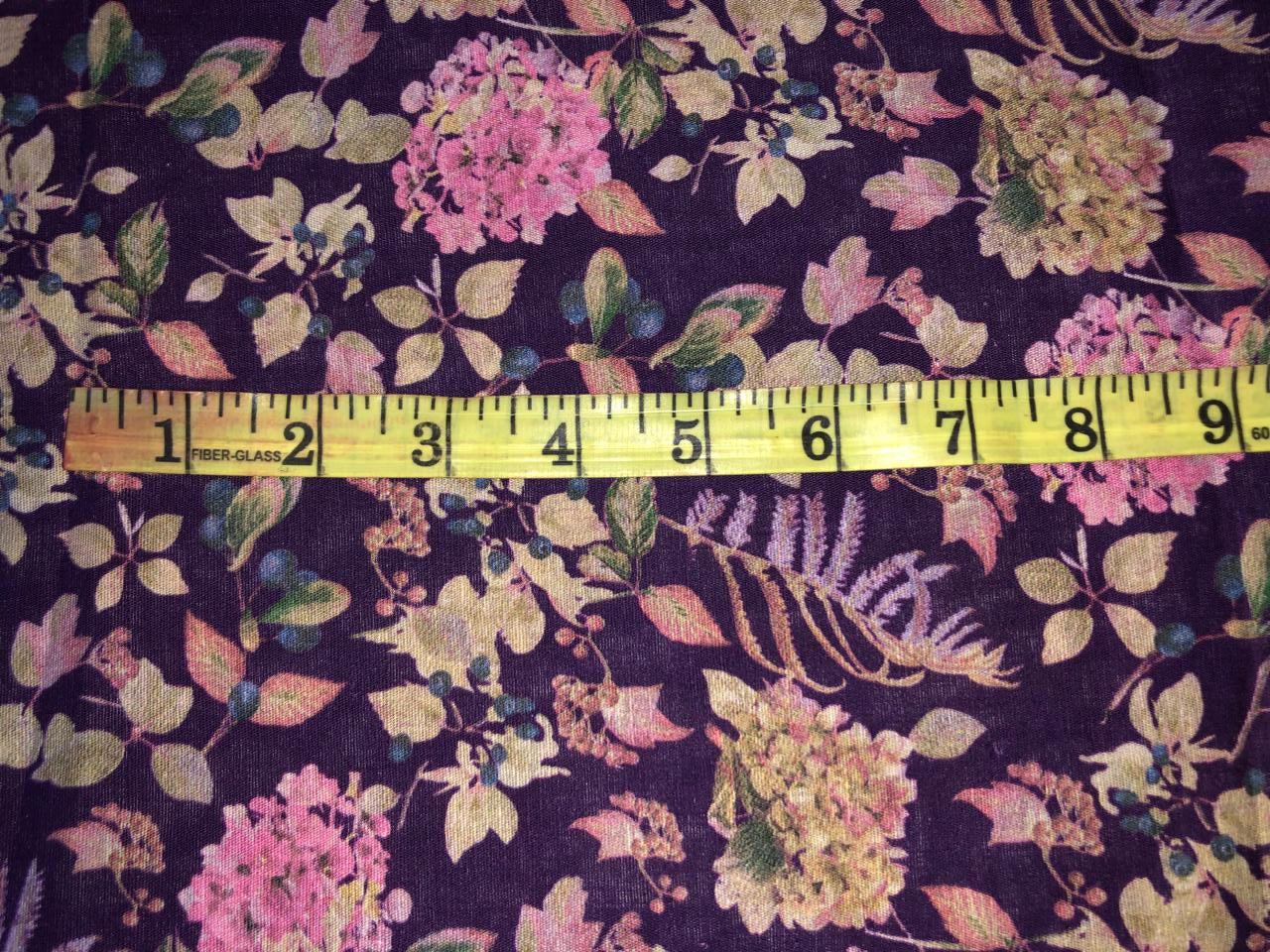 100% linen FLORAL digital print fabric 44" wide available in 2 colors green and aubergine purple [/1595915960]