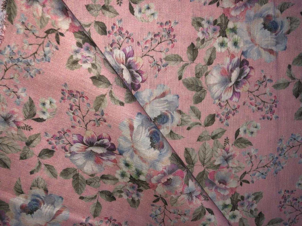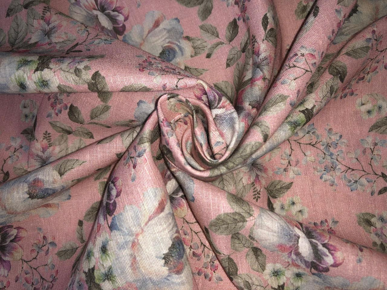 100% linen FLORAL digital print fabric 44" wide PEACH [15963]
