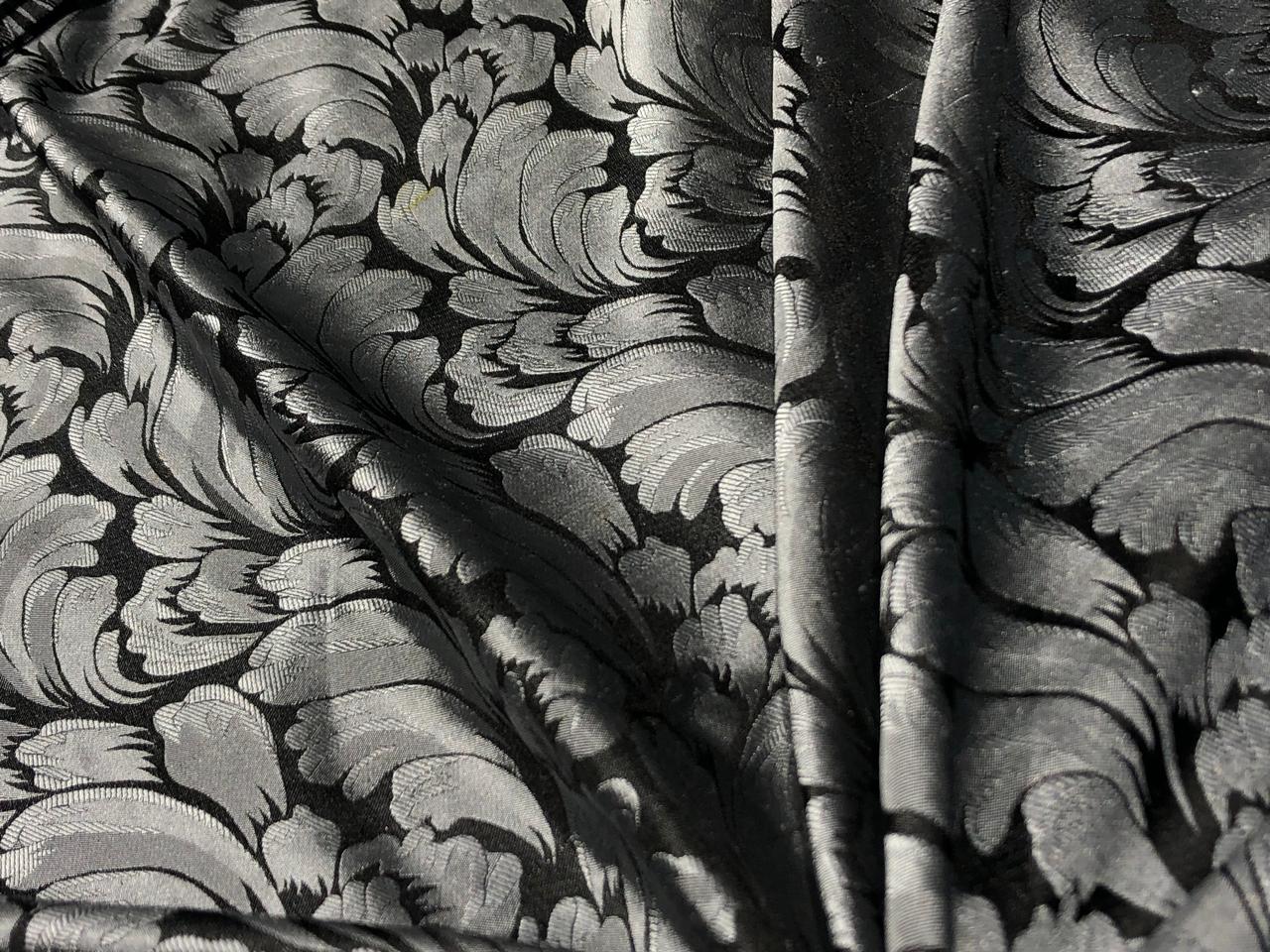 100% Silk Taffeta Jacquard Fabric BLACK AND SILVER   jacquard  TAFJACNEW12 [16157]