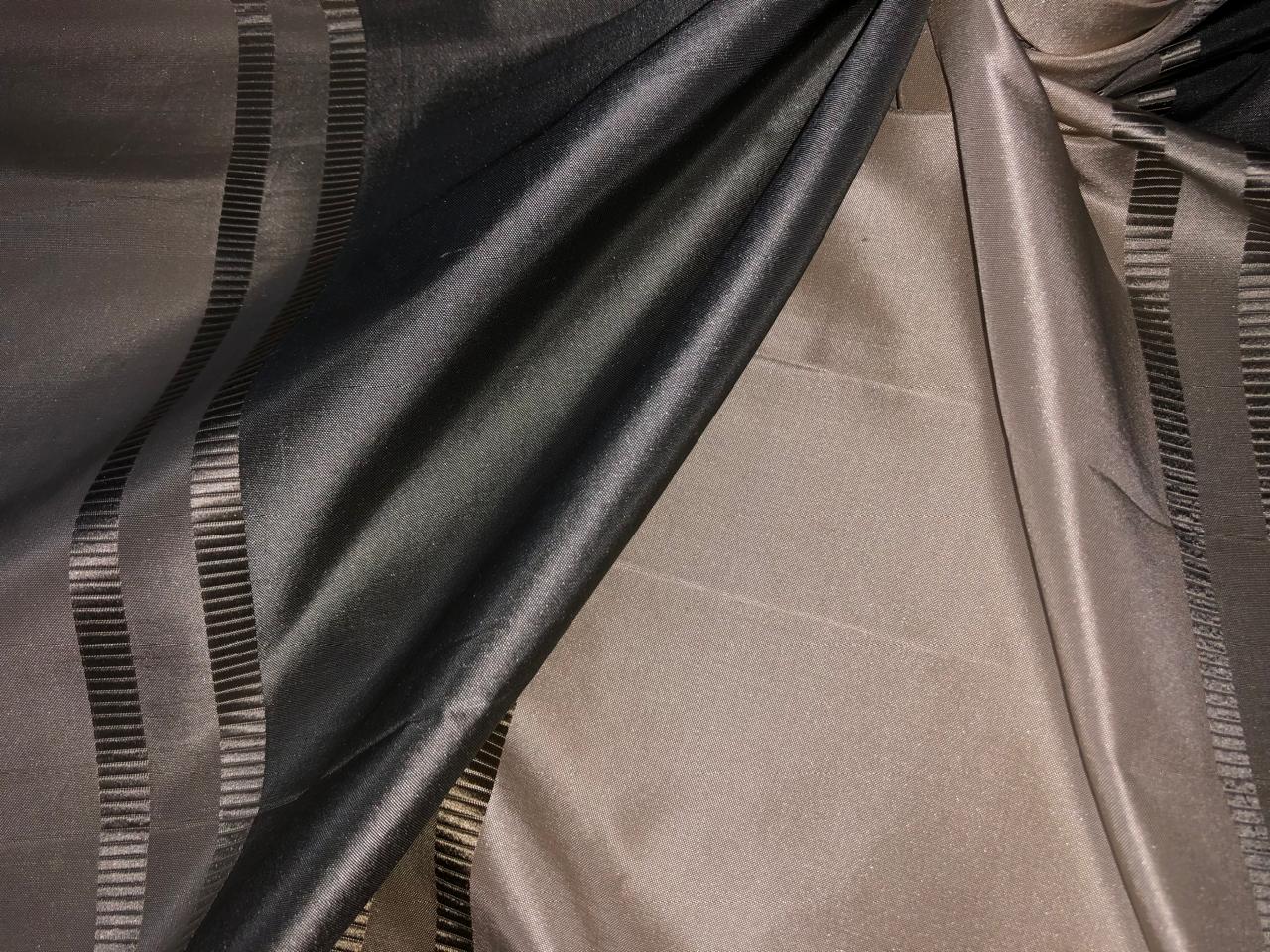 100% silk taffeta STRIPE cream ,silver grey and taupe jacquard stripe TAFS139[17]