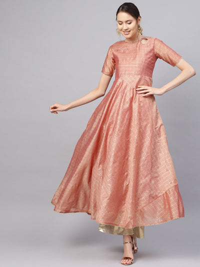 Chanderi is a traditional ethnic fabric characterized by its lightweight, sheer texture and fine luxurious feel. Chanderi fabric is produced by weaving in silk and golden Zari in the traditional cotton yarn that results in the creation of the shimmering texture.