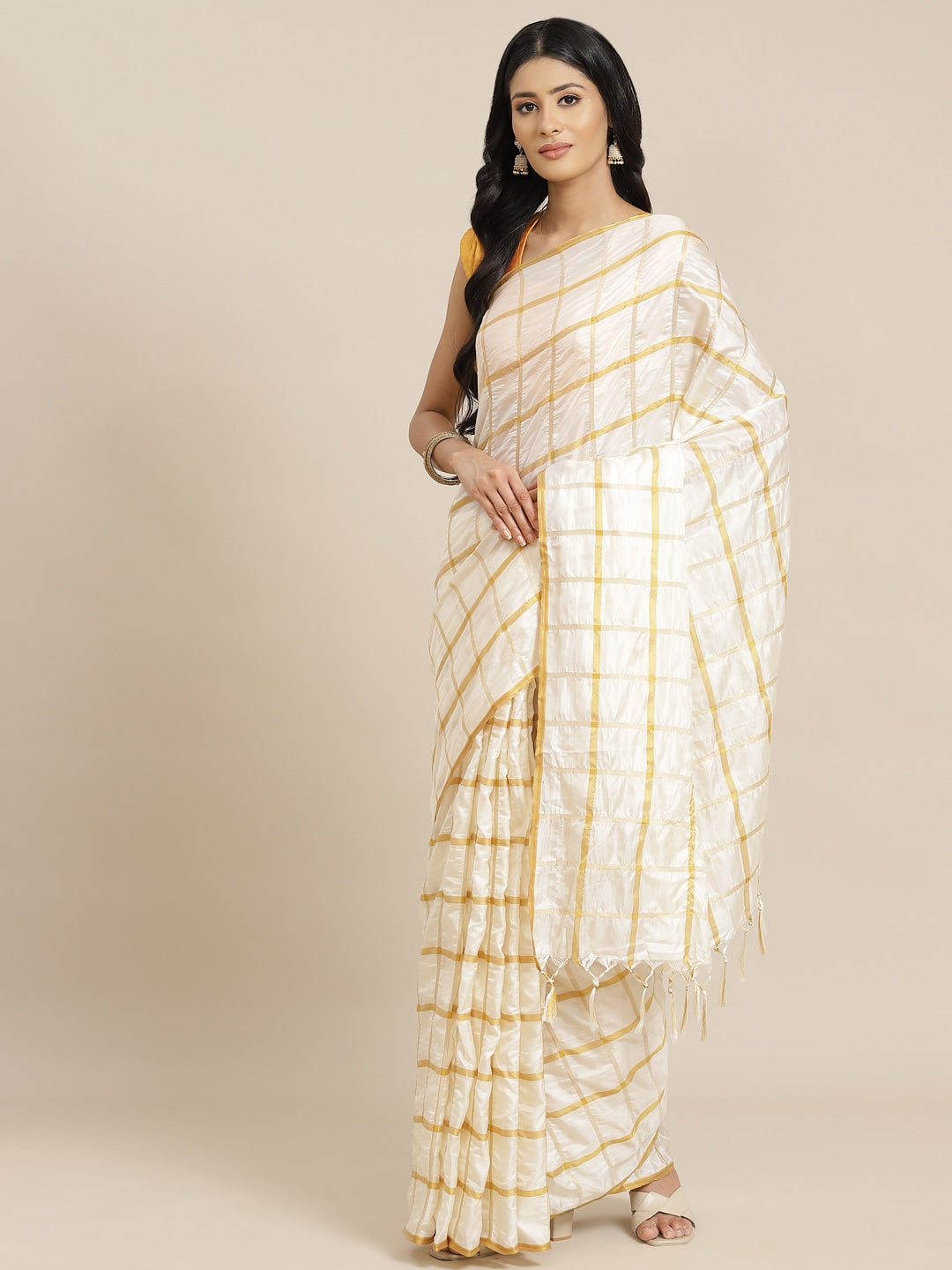 Chanderi tissue fabric Checks metallic gold 44" wide [11071]