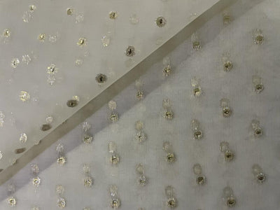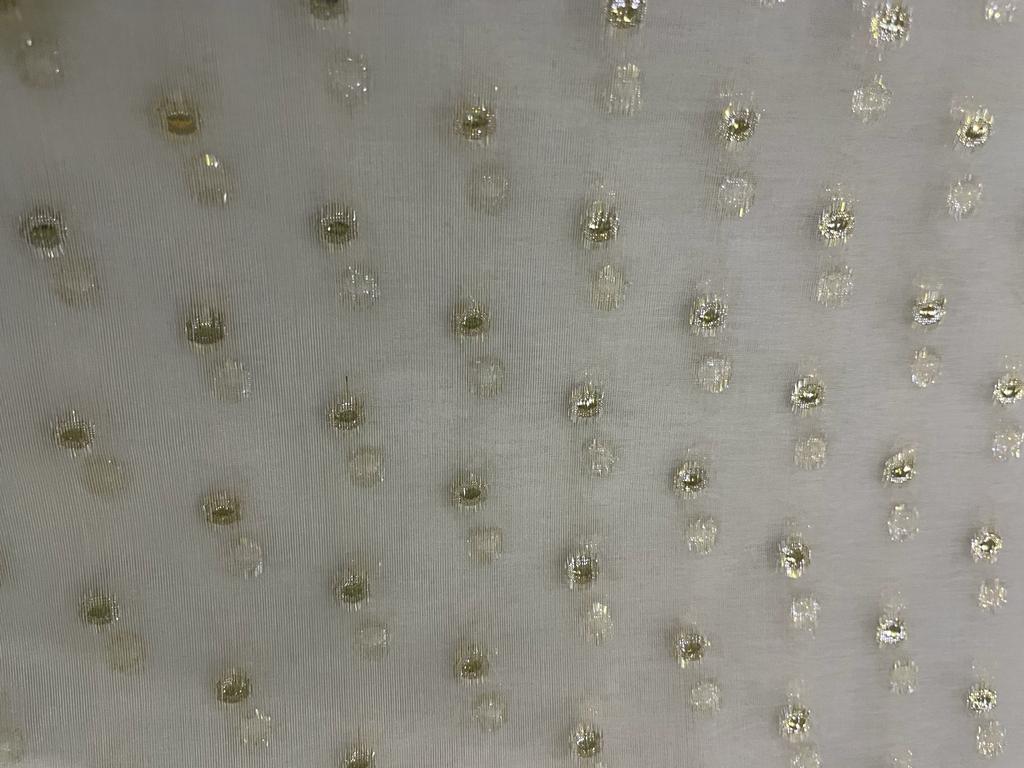Silk organza fabric 44" wide with gold jacquard dot motifs~ 30-40 gm ~ Semi Sheer [11005]