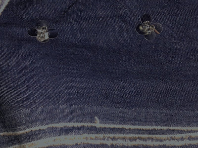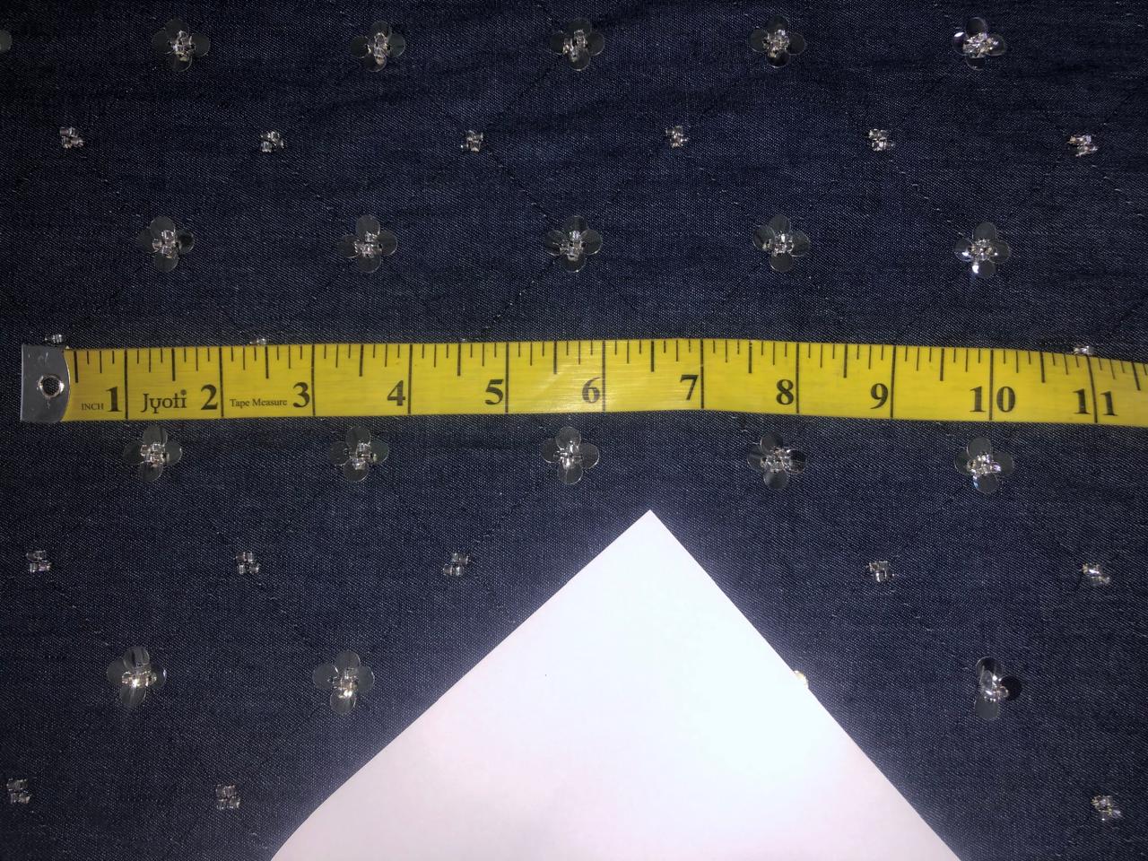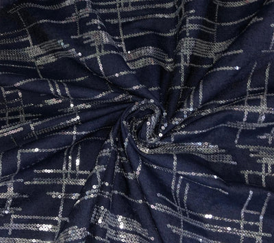 100% Cotton Denim Fabric 58" wide WITH SILVER SEQUENCE available in 2 designs floral [DENIM BLUE AND BLACK] and squares