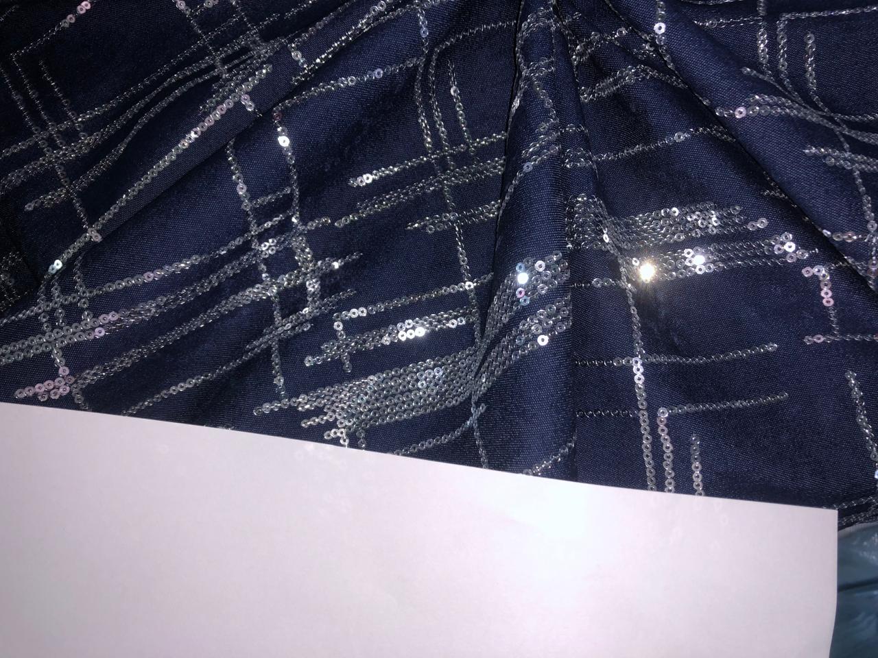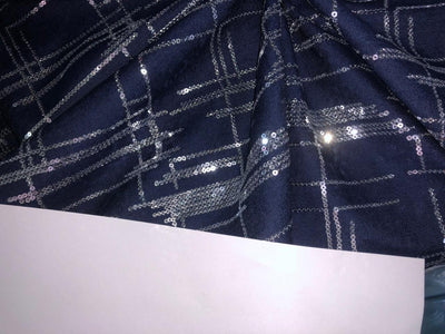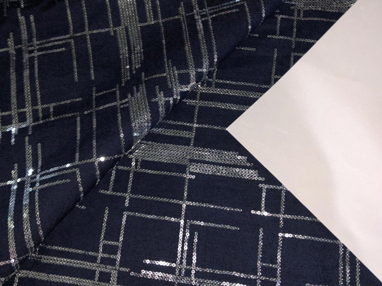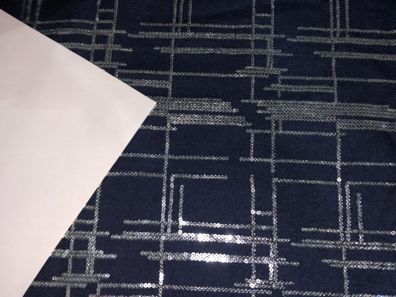 100% Cotton Denim Fabric 58" wide WITH SILVER SEQUENCE  available in 2 designs floral [DENIM BLUE AND BLACK] and squares