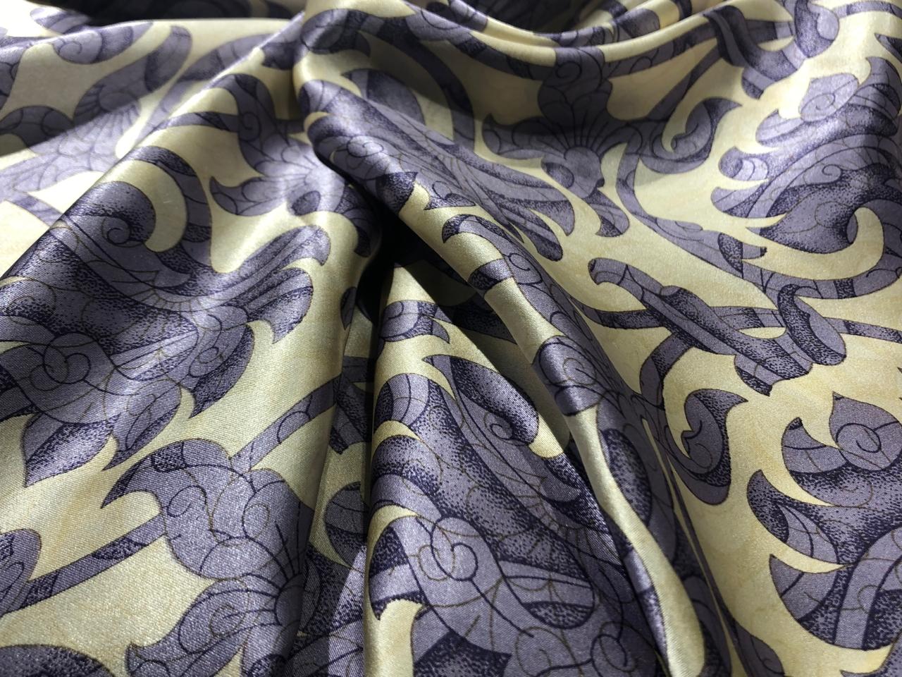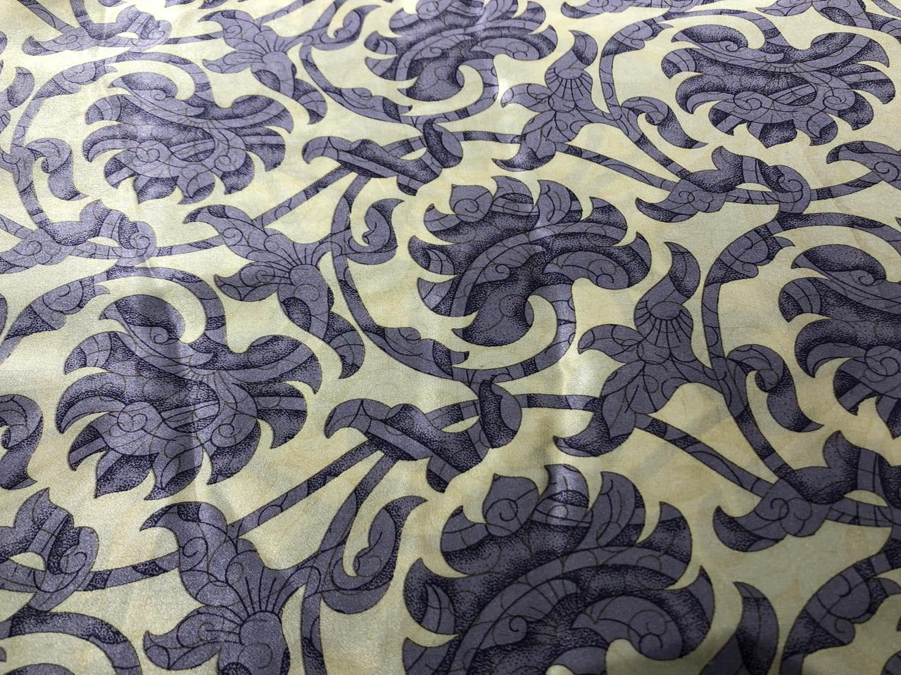 100% PURE SILK 80 GRAMS  SATIN PRINTED 44"WIDE FABRIC FLORAL PRINTED available in 2 colors  BLACK WITH GOLD and CREAM WITH LILAC [16944/48]