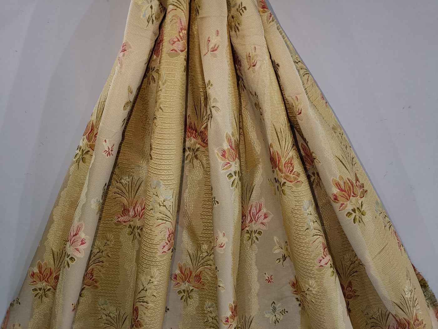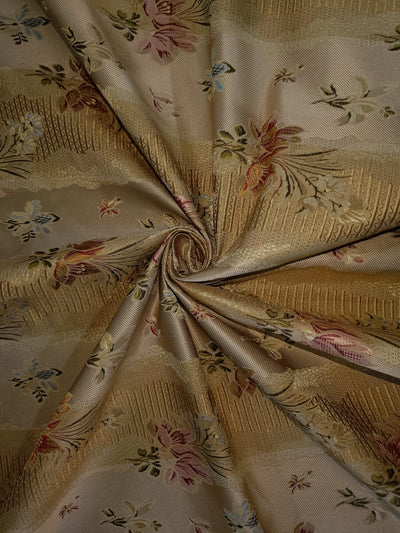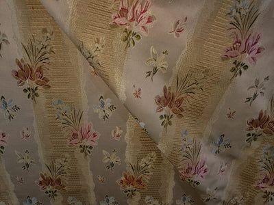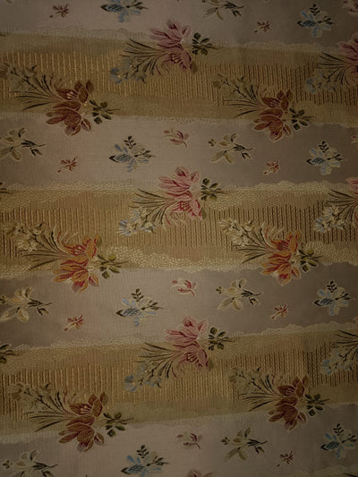 100% Silk Taffeta Jacquard Fabric  gold with floral jacquard stripes and floral embroidery  54" wide 74.70MOMME TAFJACNEW9 available for bulk preorder