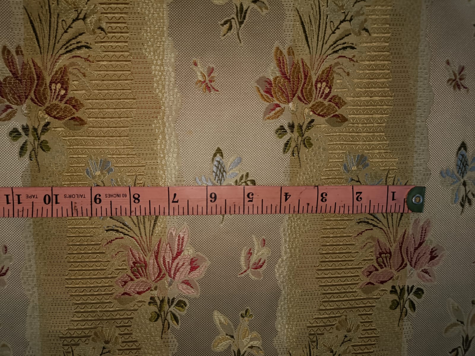 100% Silk Taffeta Jacquard Fabric gold with floral jacquard stripes and floral embroidery 54" wide 74.70MOMME TAFJACNEW9 available for bulk preorder