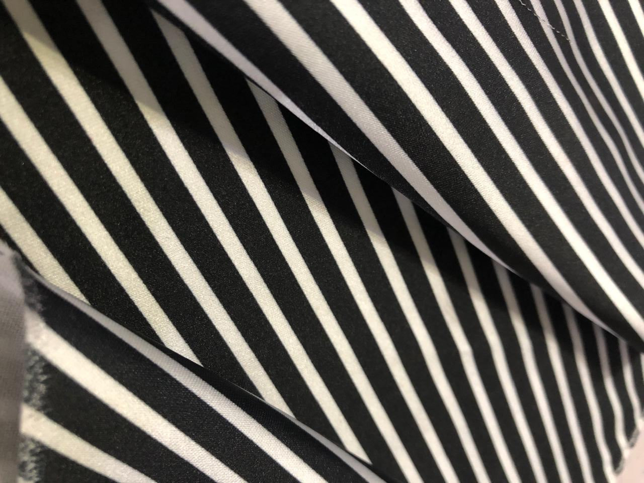 Satin ARMANI fabric print BLACK AND WHITE HORIZONTAL STRIPE 58" wide [16636]