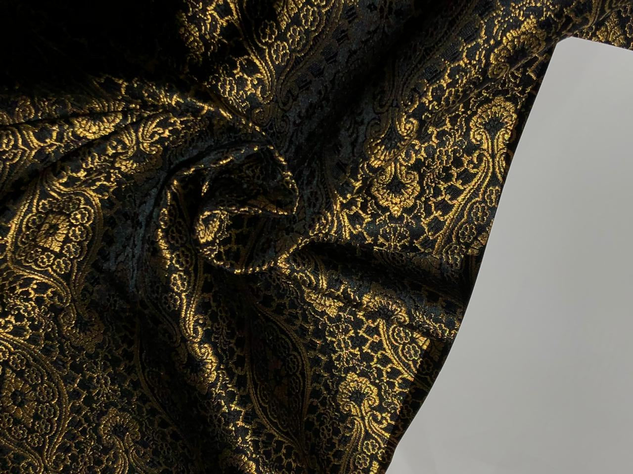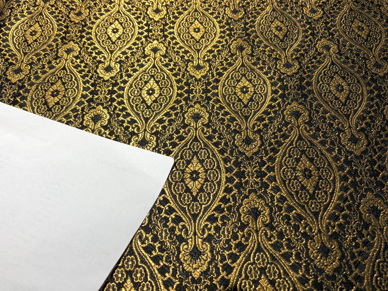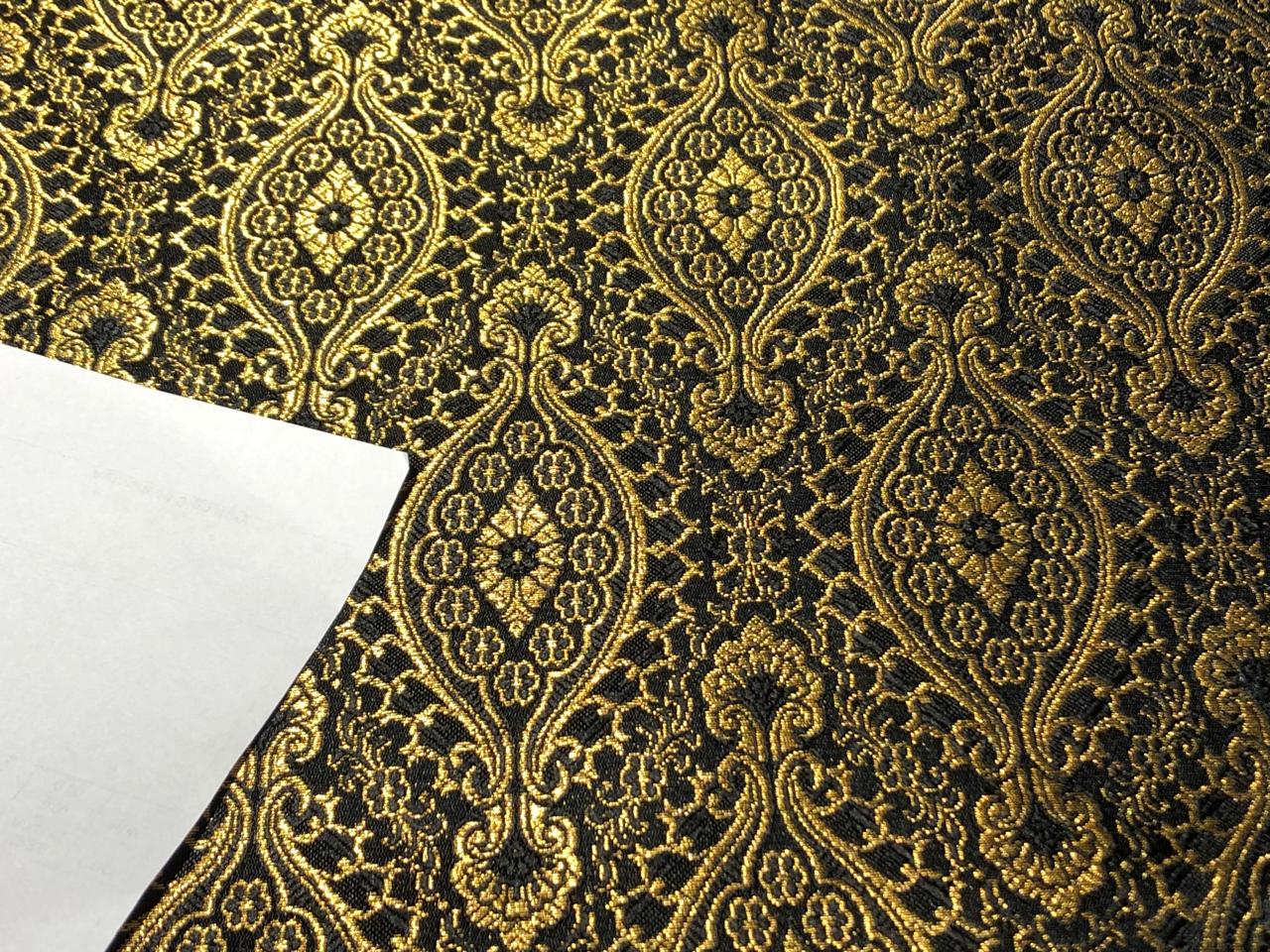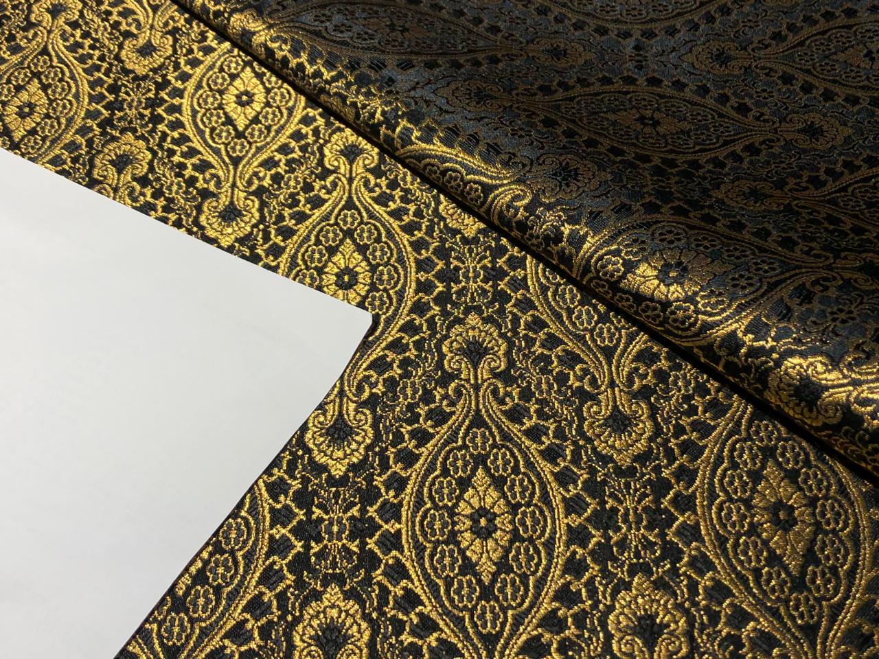 Silk Brocade Fabric BLACK X metallic gold Color 44" wide BRO947[2]