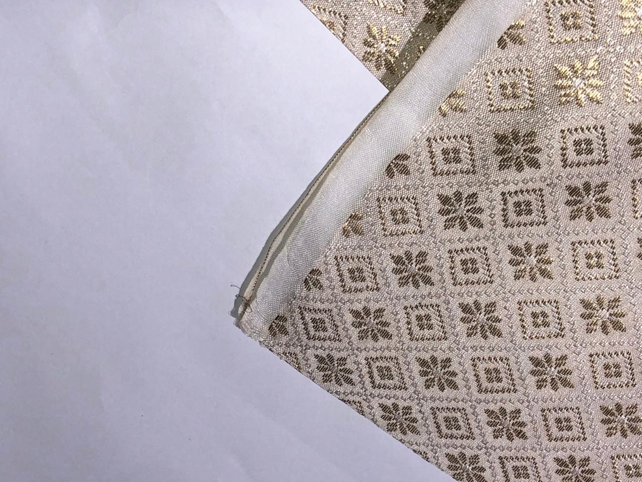 Silk Brocade fabric cream with diamond and floral  gold metallic  jacquard motifs BRO991[2]