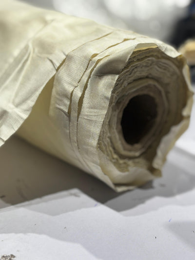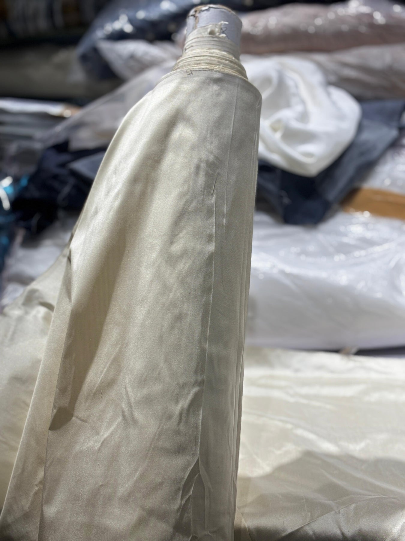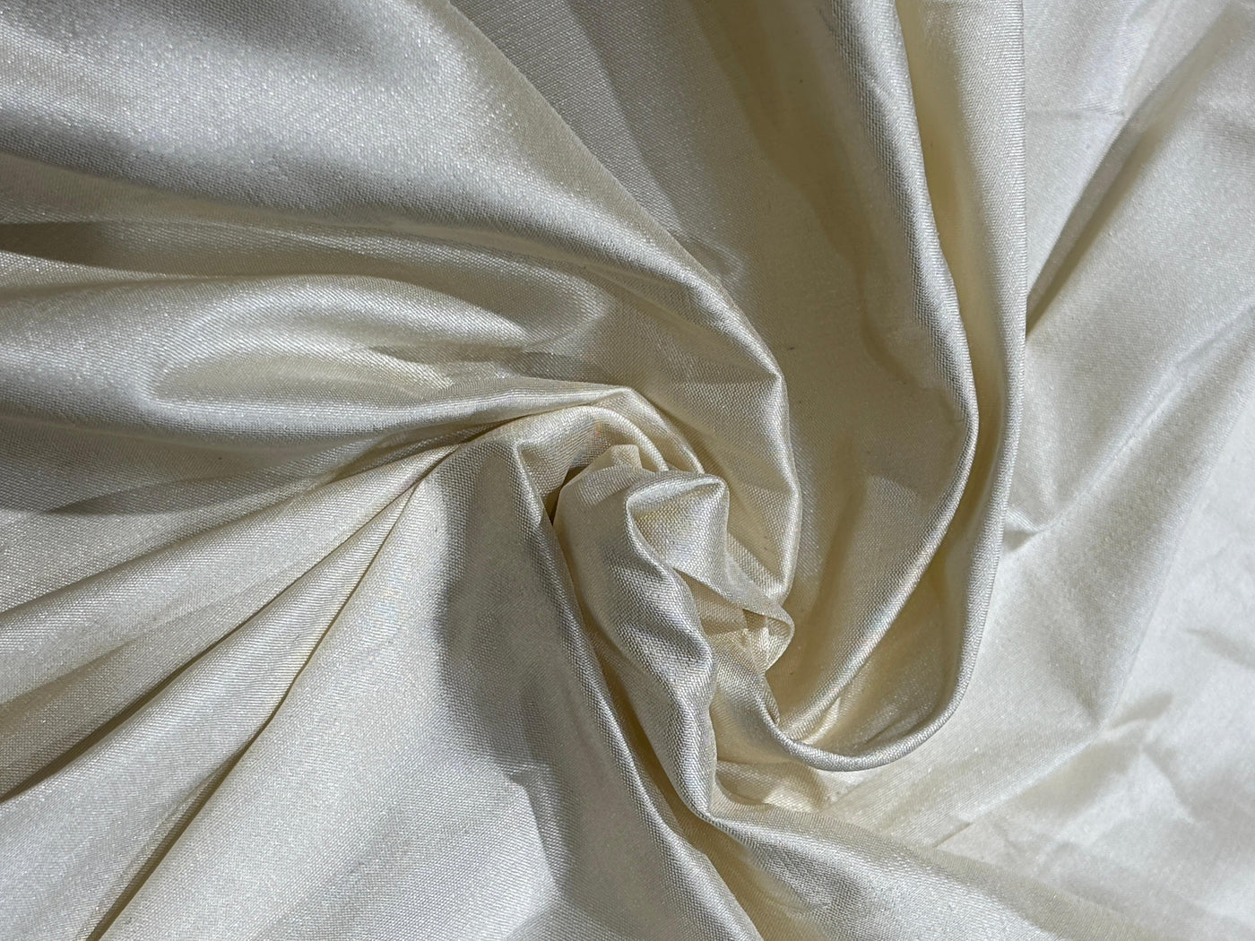 Dupioni (also referred to as Douppioni or Dupion) is a plain weave crisp type of silk fabric, produced by using fine thread in the warp and uneven thread reeled from two or more entangled cocoons in the weft. This creates tightly-woven yardage with a highly-lustrous surface.It is sometimes confused with 'shantung' or 'raw silk' which is usually lighter in weight and has a finer weave than dupion.