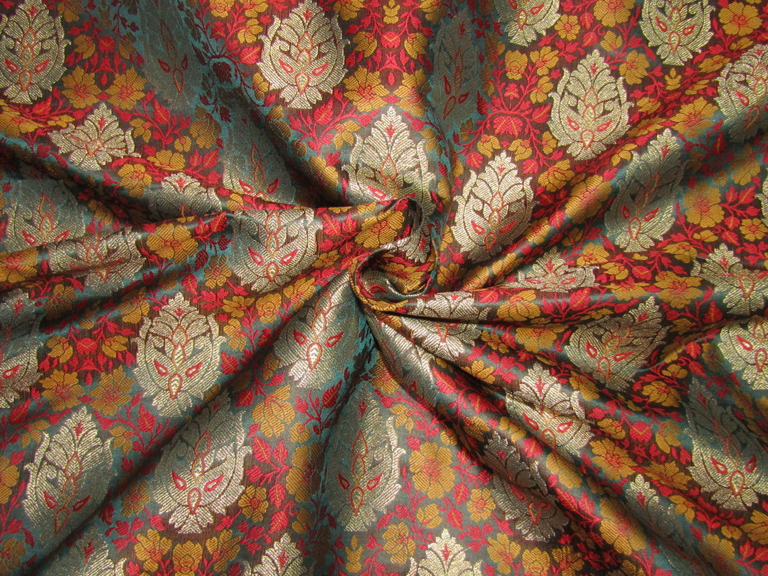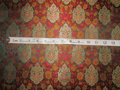 BROCADE jacquard FABRIC mustard ,bottle green,red x metallic gold color 44" wide