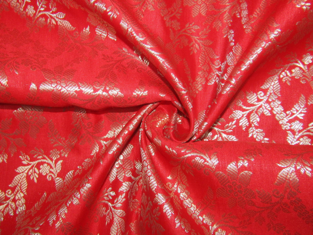 Silk Brocade fabric Red x metallic gold color 44" wide BRO773[3]