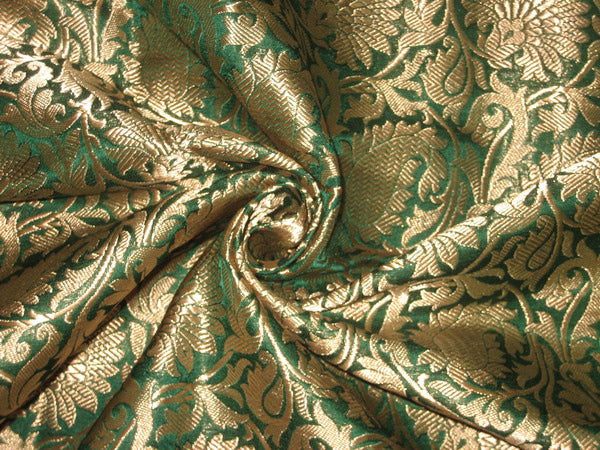 Heavy Silk Brocade Fabric Green & Antique Gold color 44" wide BRO114[2]