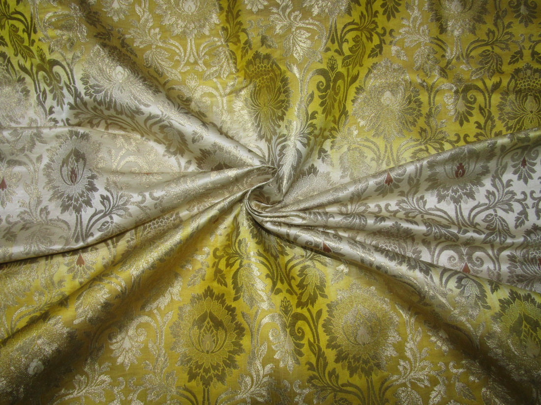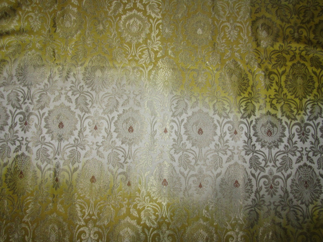 Silk Brocade KING KHAB fabric cream yellow and metallic gold SHADED color 36" wide BRO758[4]