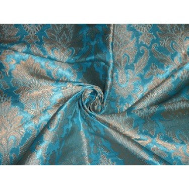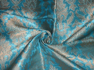 Pure Silk Brocade Fabric Aqua Blue & Metallic Gold color 44" wide BRO201[1]