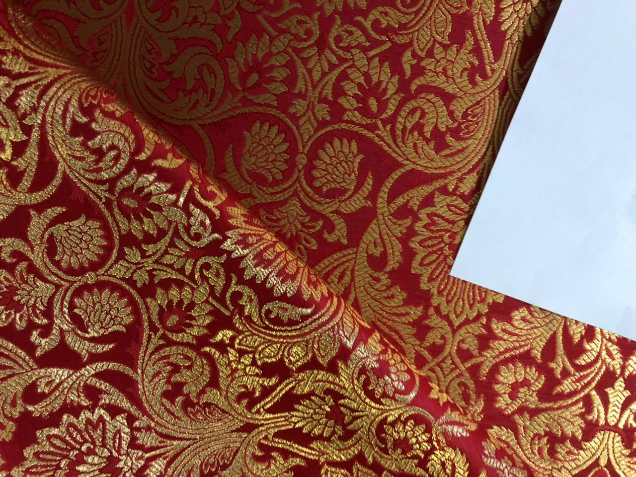 Silk Brocade fabric 44" wide available in Dark red and red Floral Jacquard BRO909[4/5]