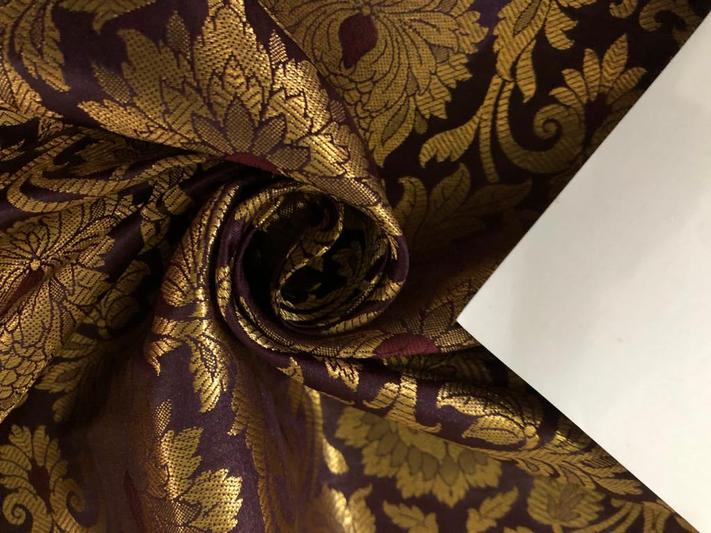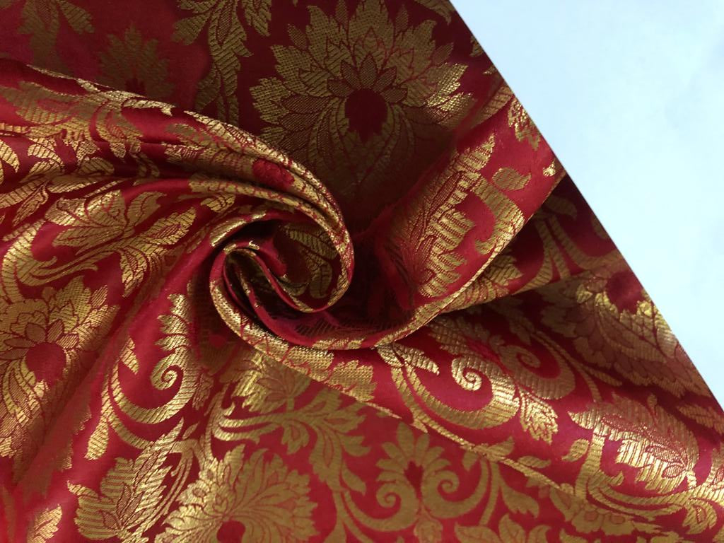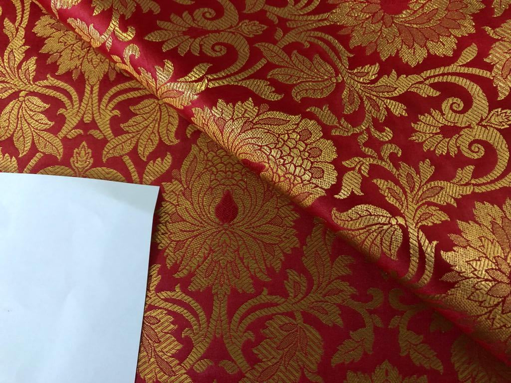 Silk Brocade fabric 44" wide Floral Jacquard available in 5 colors BRO 918 NAVY, GREEN ,DEEP BURGANDY,GOLD,RED[15714-15718]