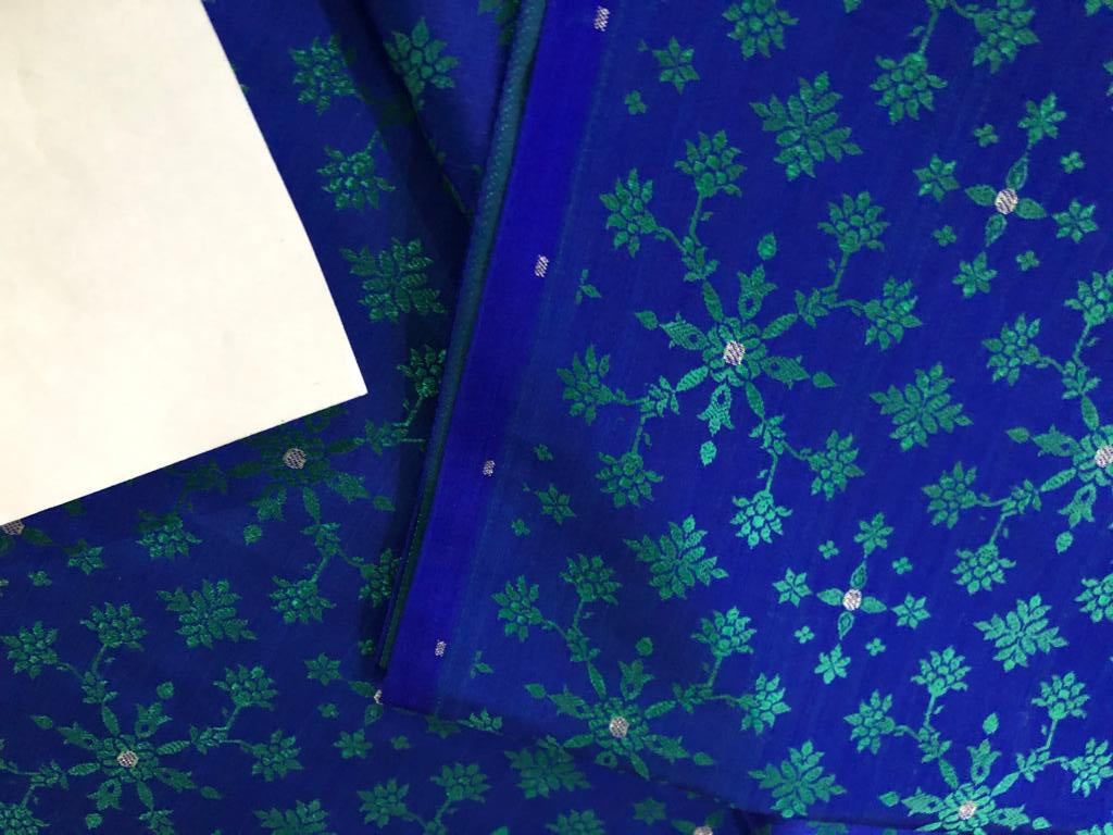 Silk Brocade fabric VESTMENT Royal blue and green 44" wide Jacquard BRO911[1]