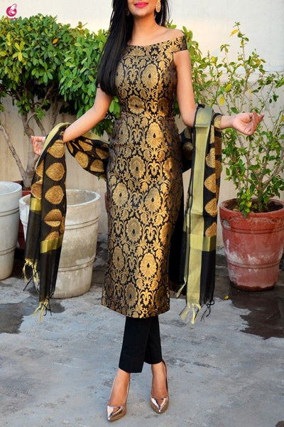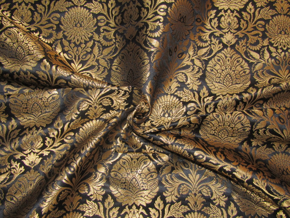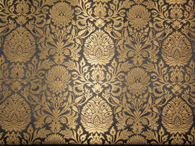Silk Brocade fabric Black x metallic gold color 44" wide BRO776[4]