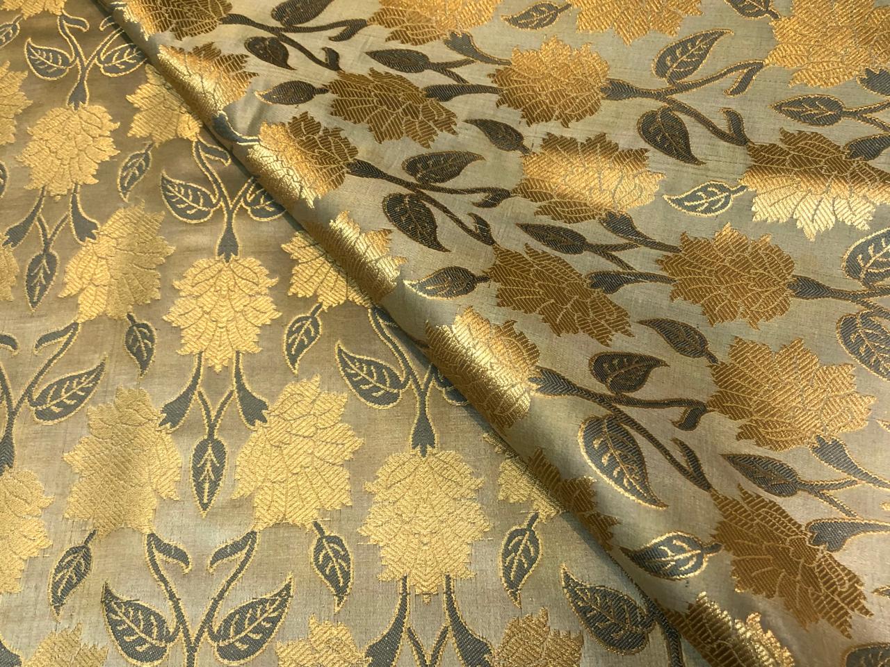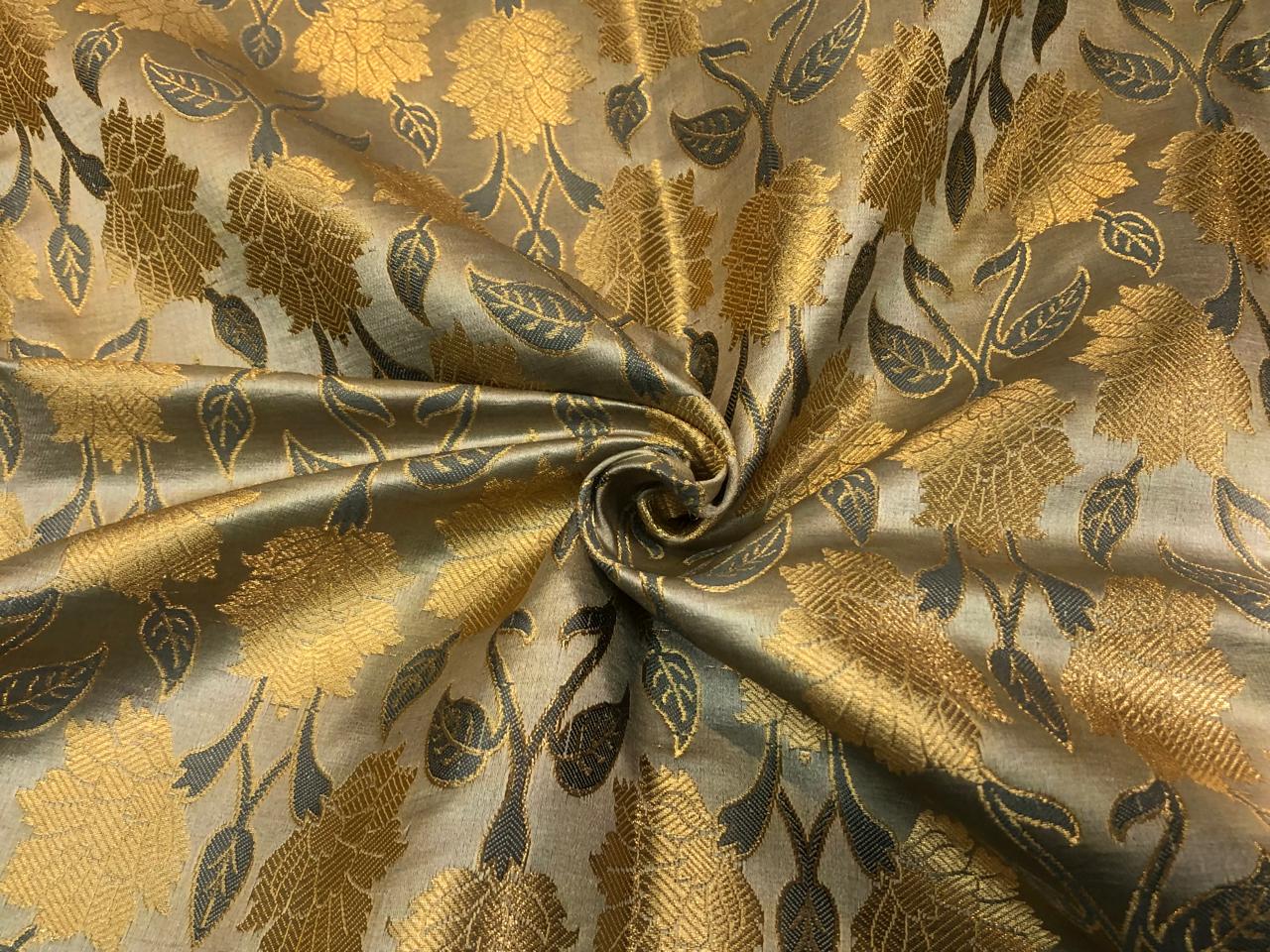 Silk Brocade fabric gold x silver floral jacquard BRO1108[2]