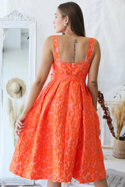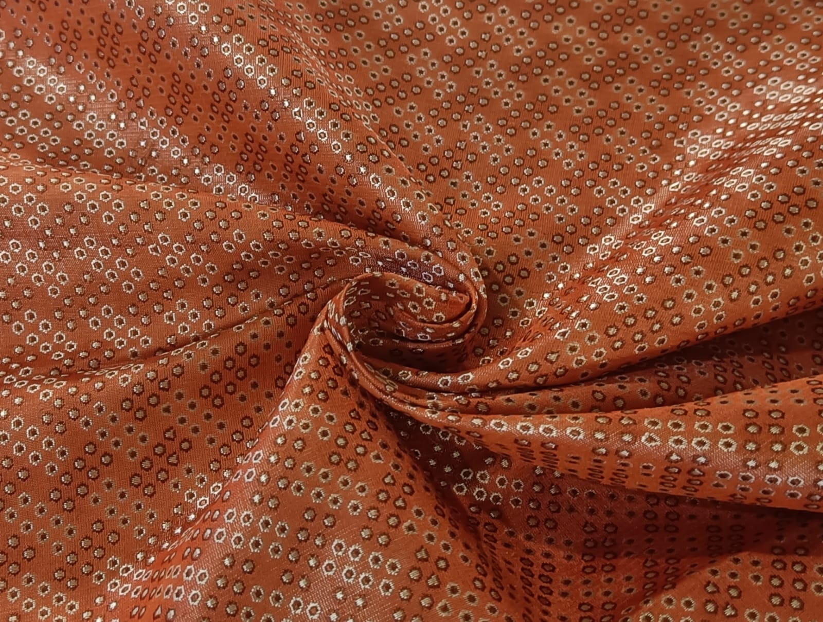 SILK BROCADE FABRIC orange 44"BRO14[5]
