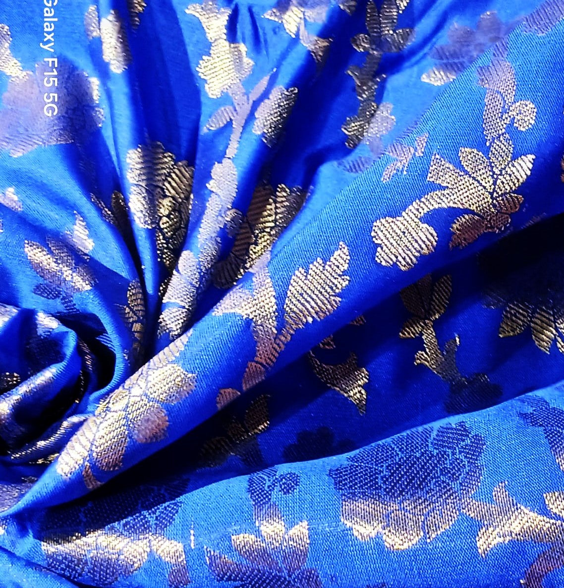 Silk Brocade fabric Royal blue x metallic gold color 44" wide BRO773[5]