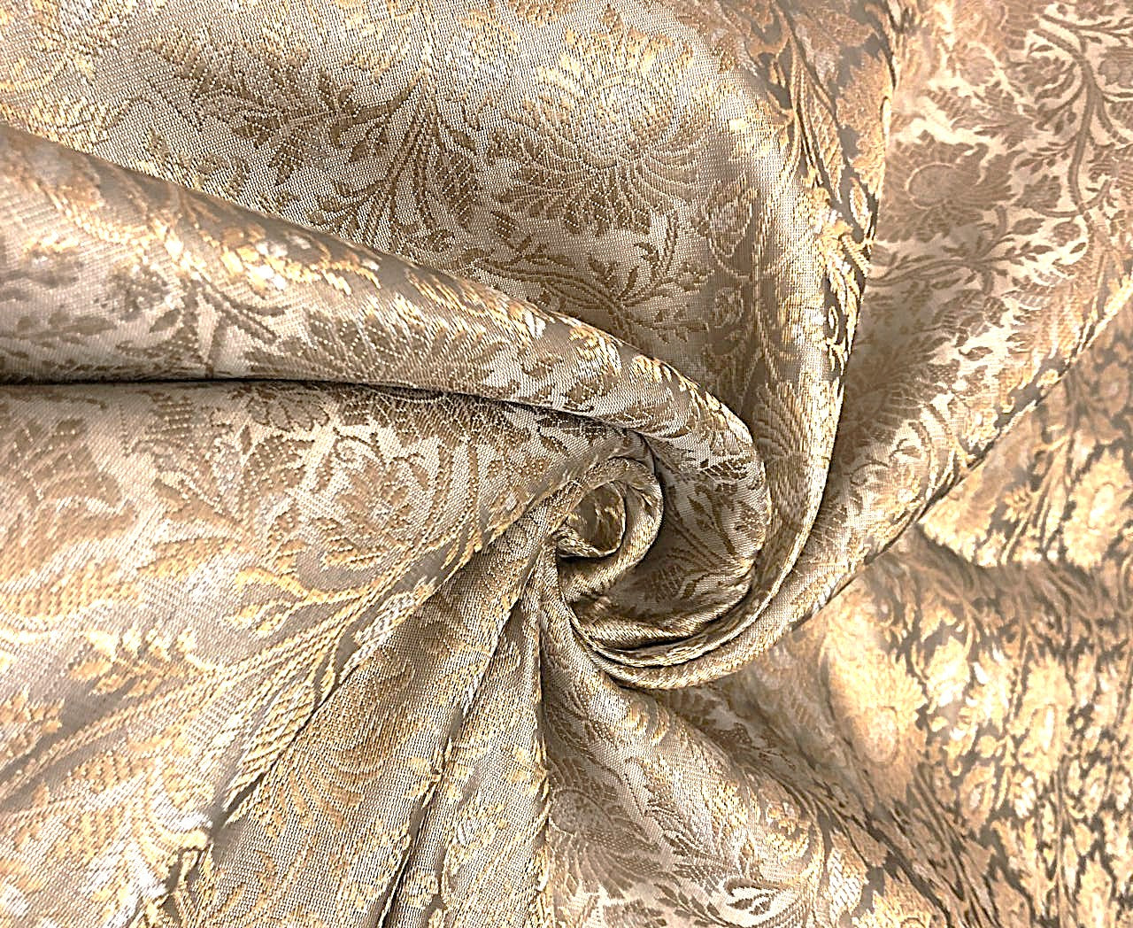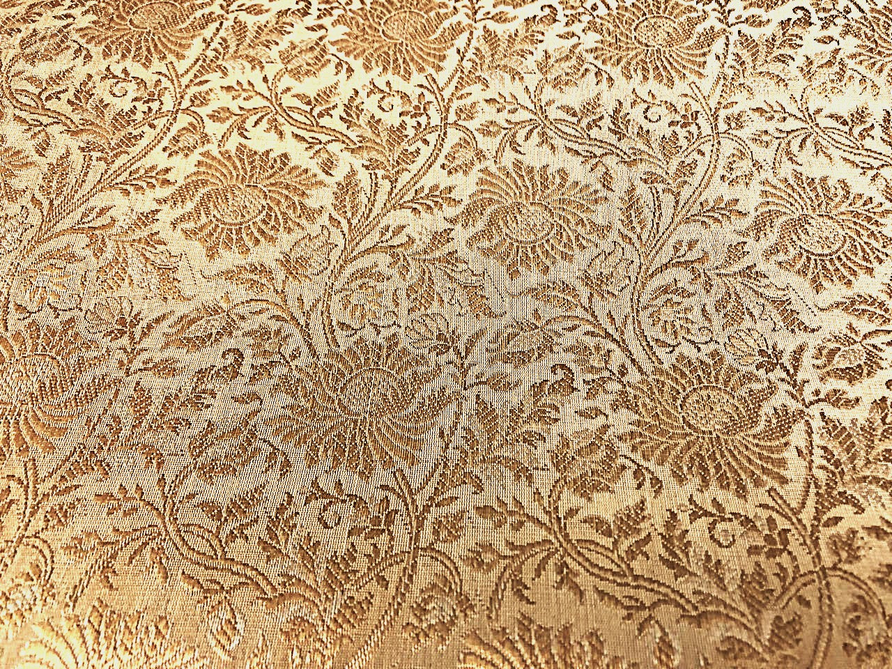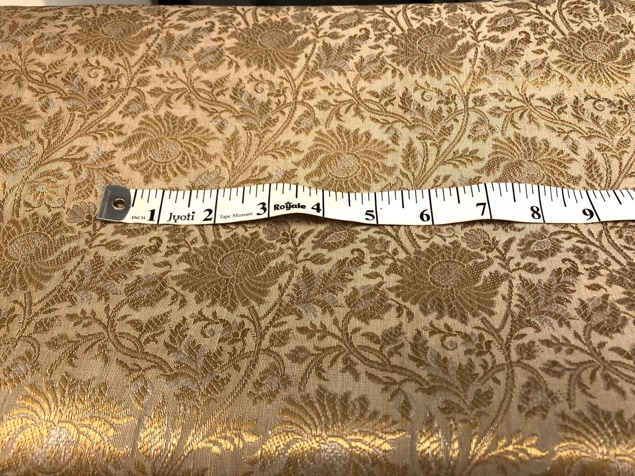 Silk Brocade fabric silver x gold metallic floral jacquard 44" wide BRO1097[4]