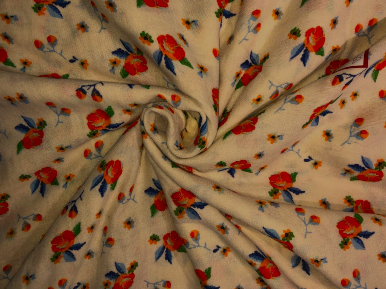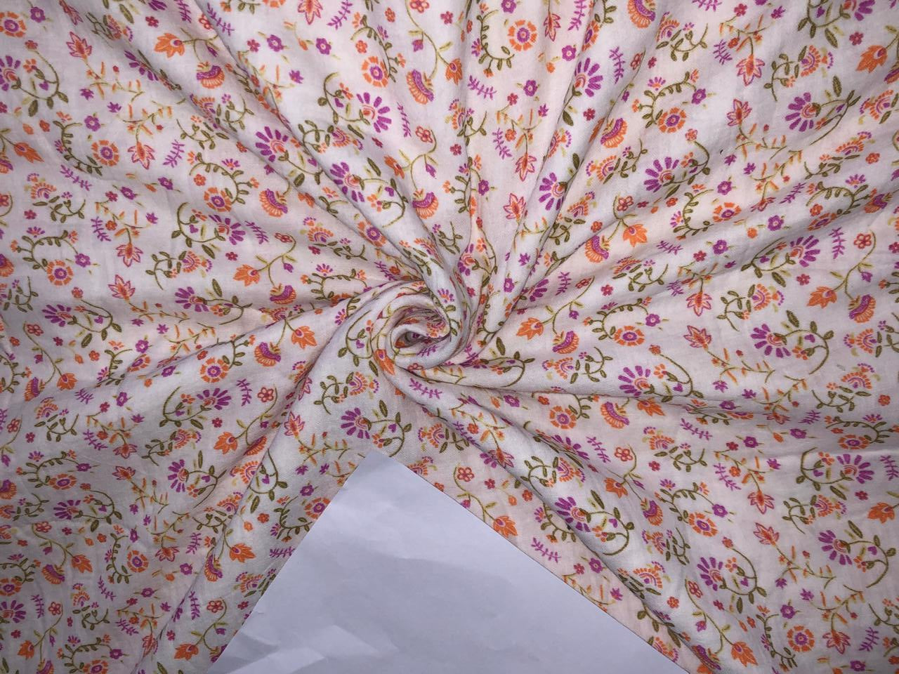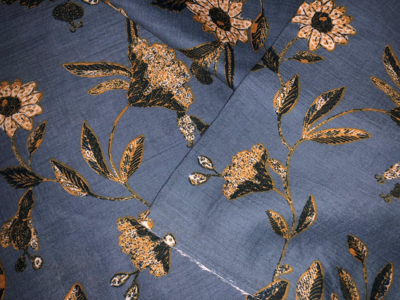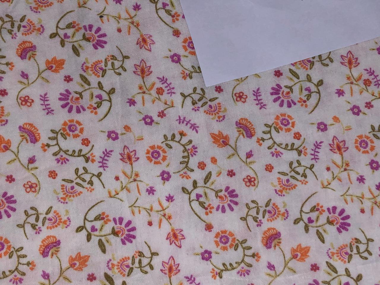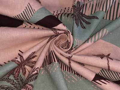 100% Cotton double cloth cotton print available in 4 different prints beach palms / blueish grey floral / pretty dainty pink orange floral AND dark ivory orange flower motif