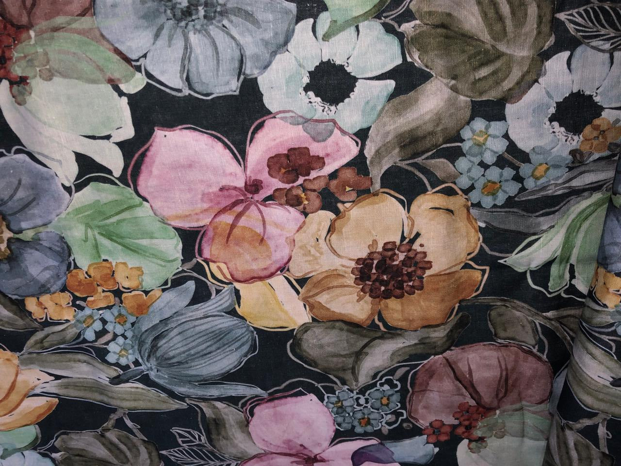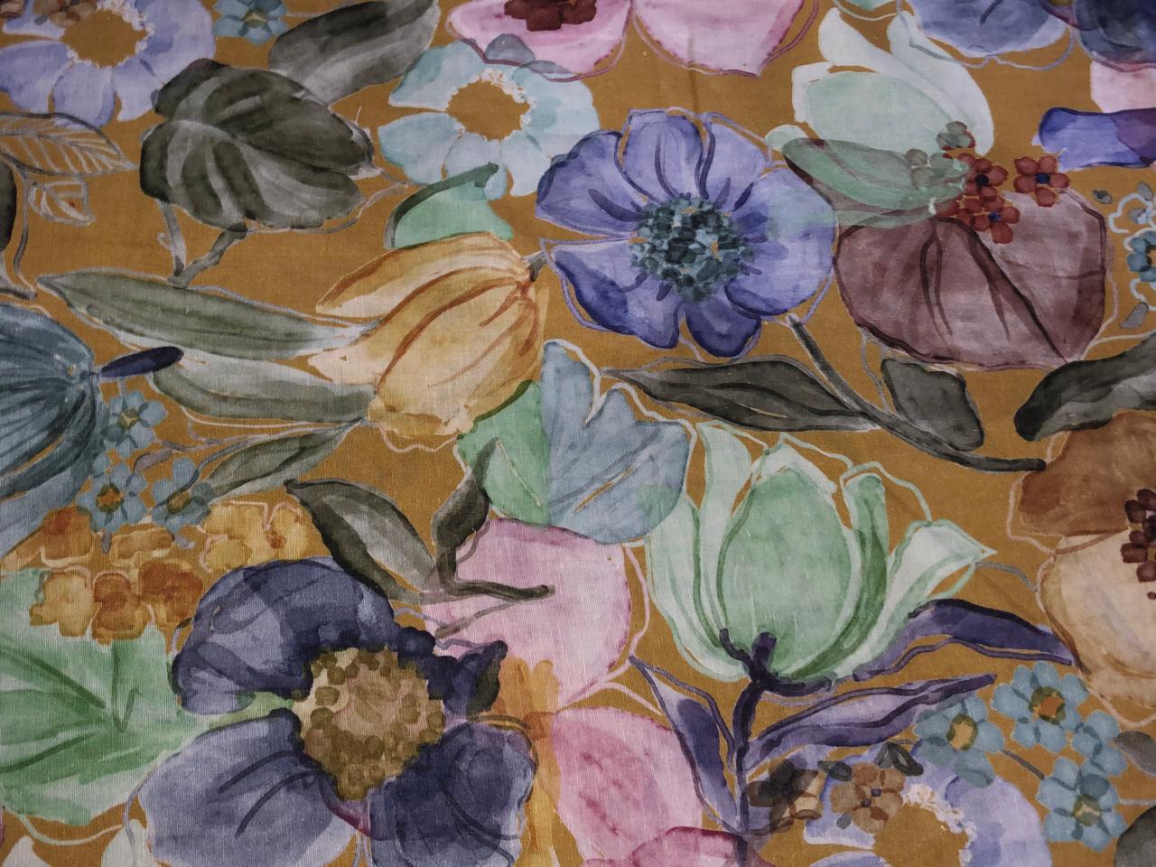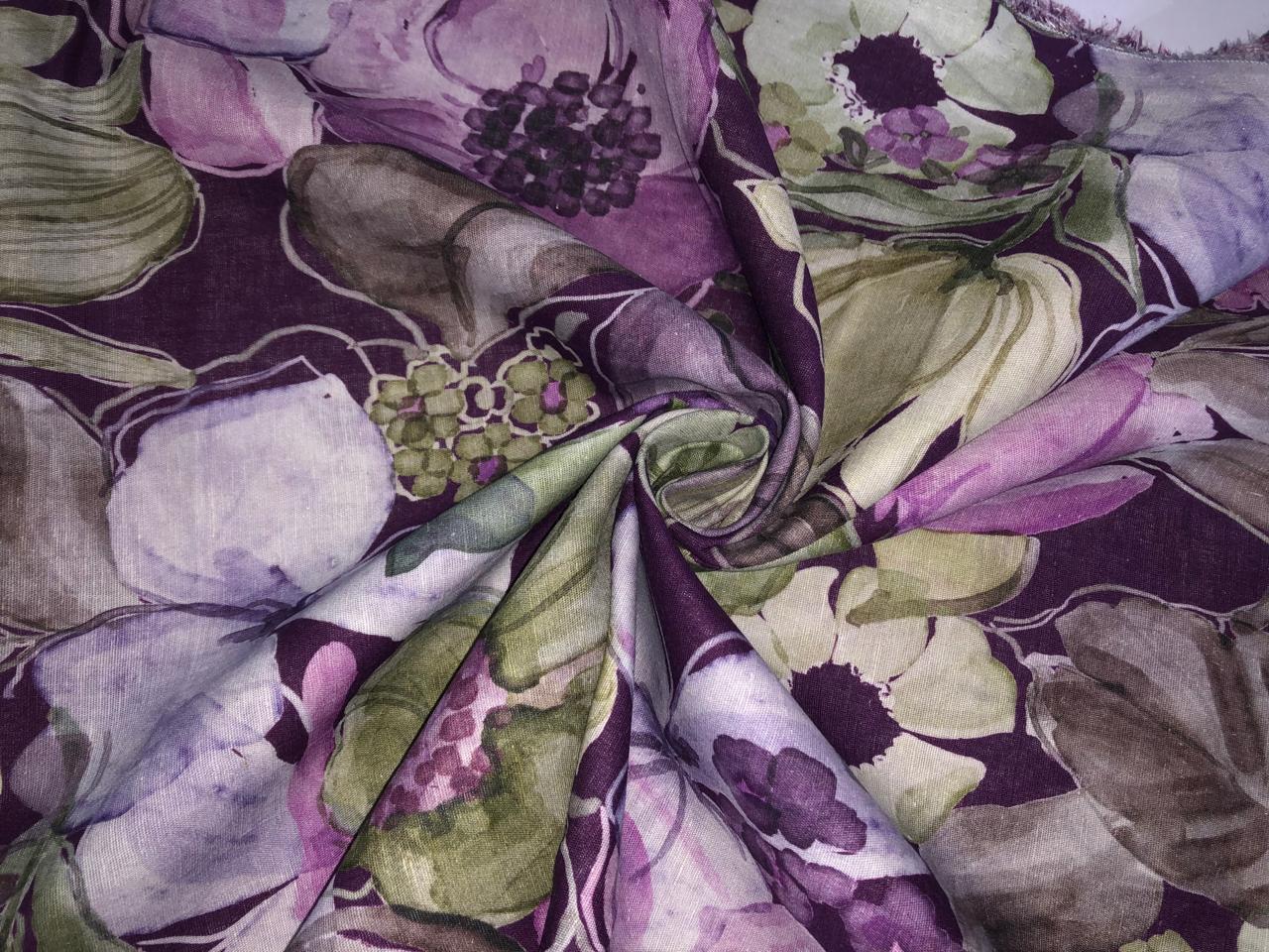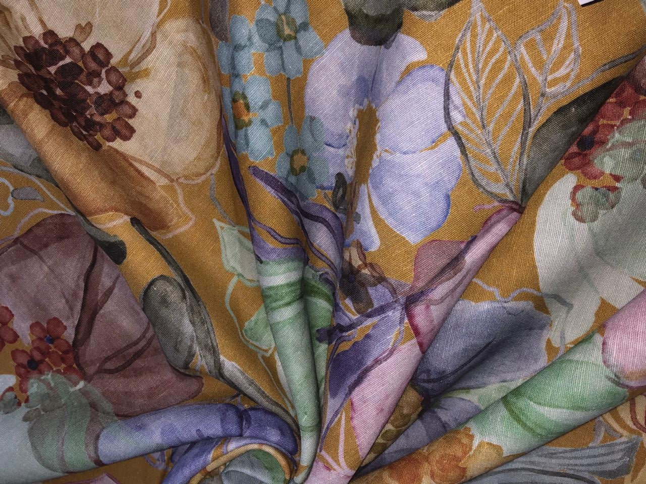 100% linen Floral digital print fabric 44" wide available in 3 colors grey, pink, mustard/mustard ,pink, grey, purple and purple, dusty green