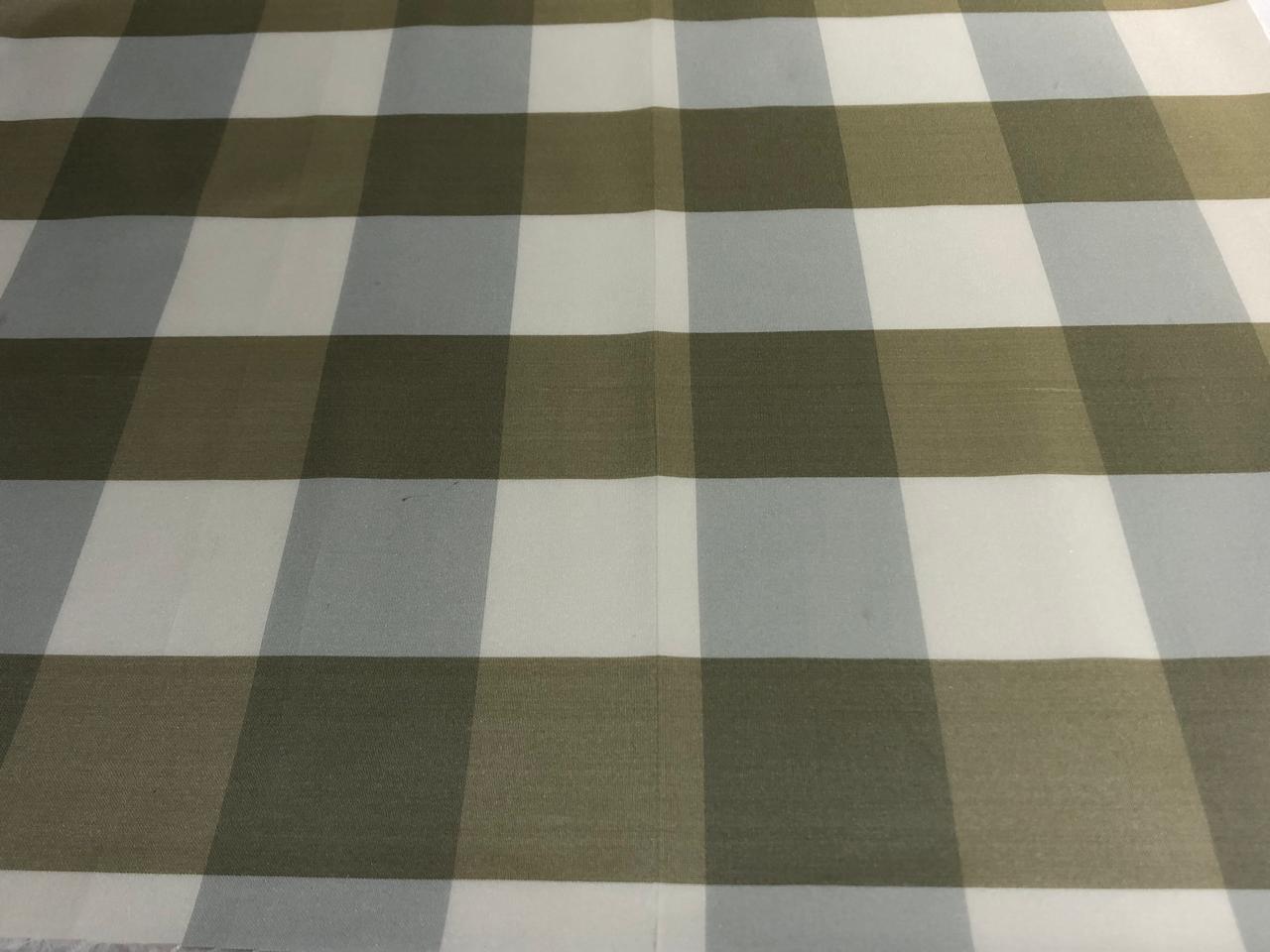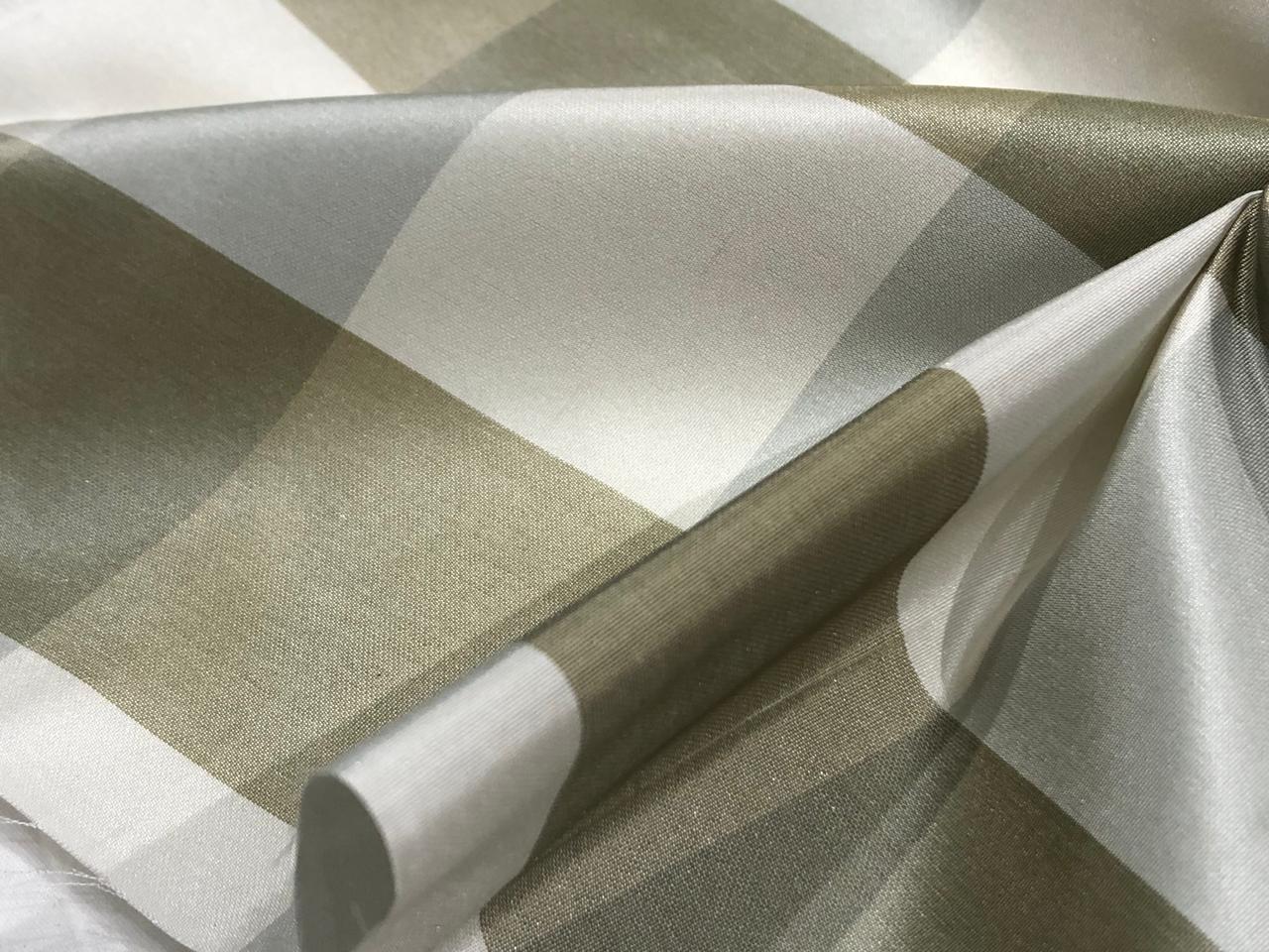 100% PURE SILK TAFFETA FABRIC PLAIDS ECRU / SILVER AND IVORY 54"wide TAFNEWC8roll