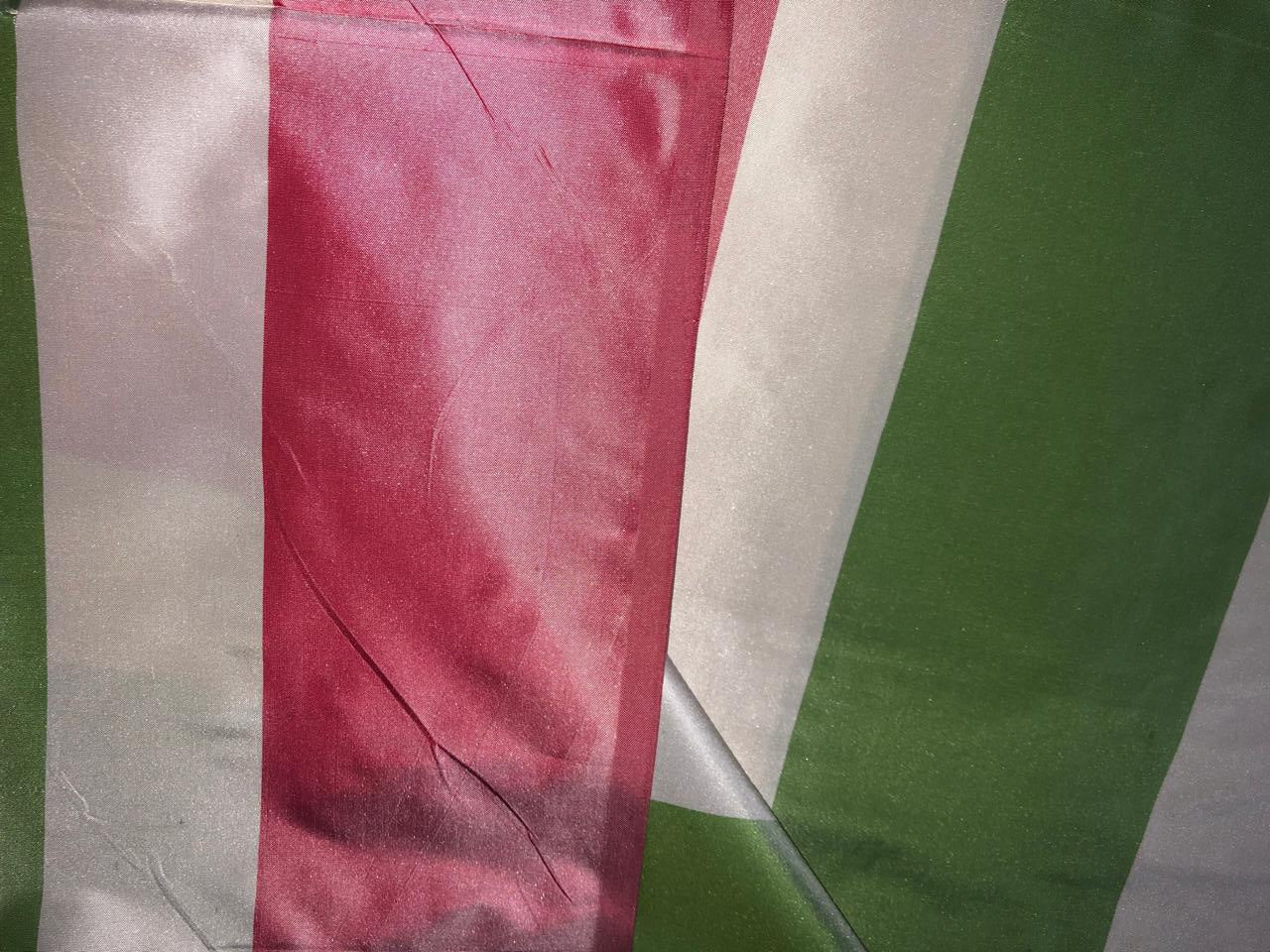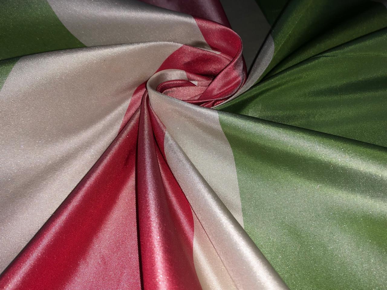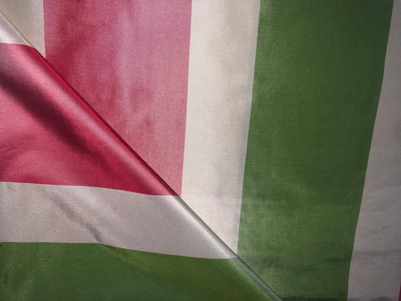 100% Pure Silk Taffeta Fabric SALMON PINK,CREAM AND GREEN stripe TAFS139[4] 54" wide