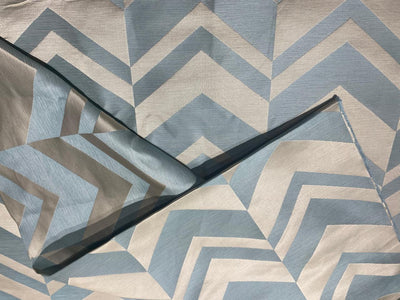 100% Silk Taffeta Jacquard Fabric BLUE AND GOLD GEOMETRIC ZIGZAG TAFJACNEW17