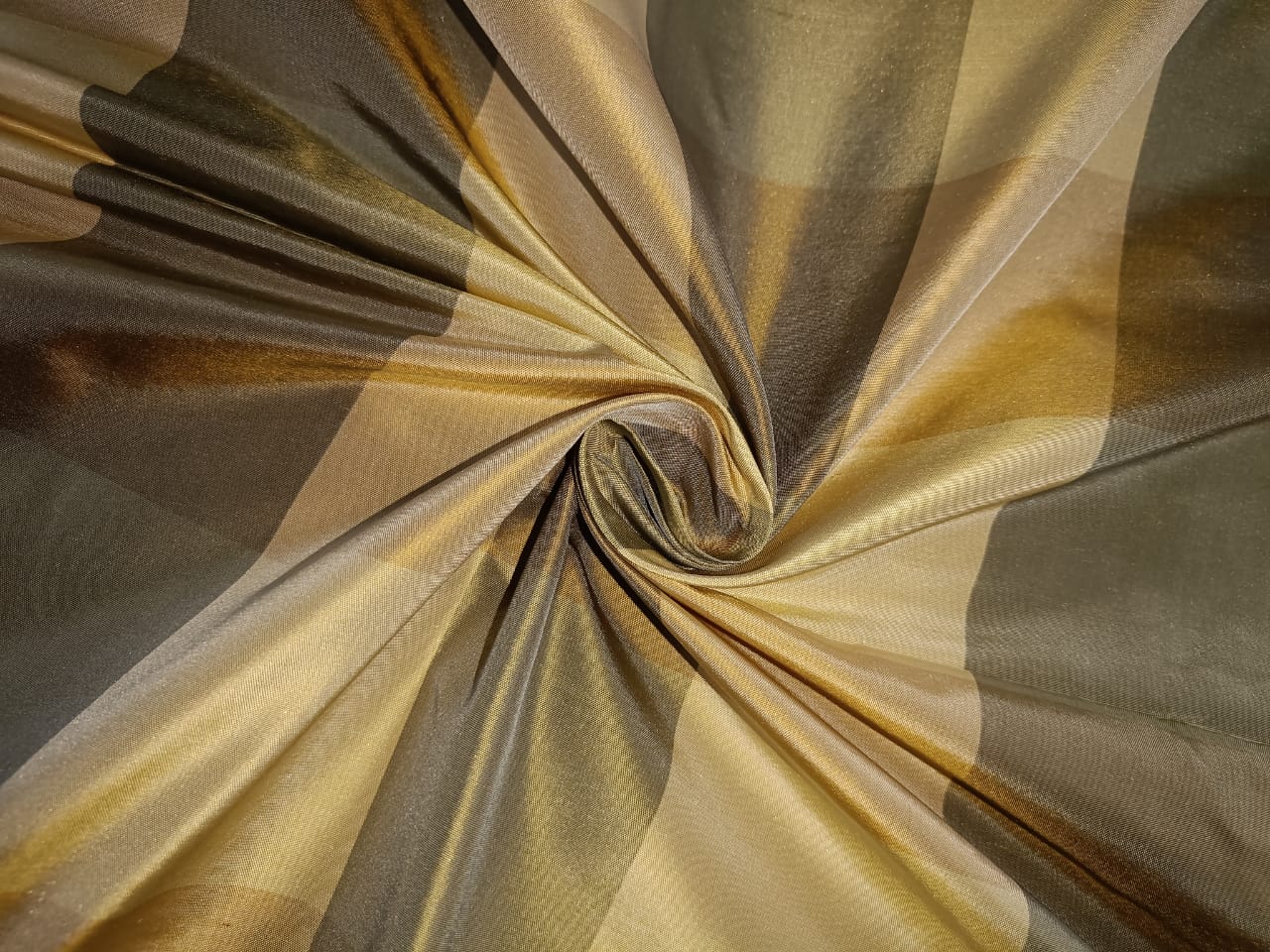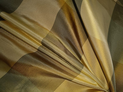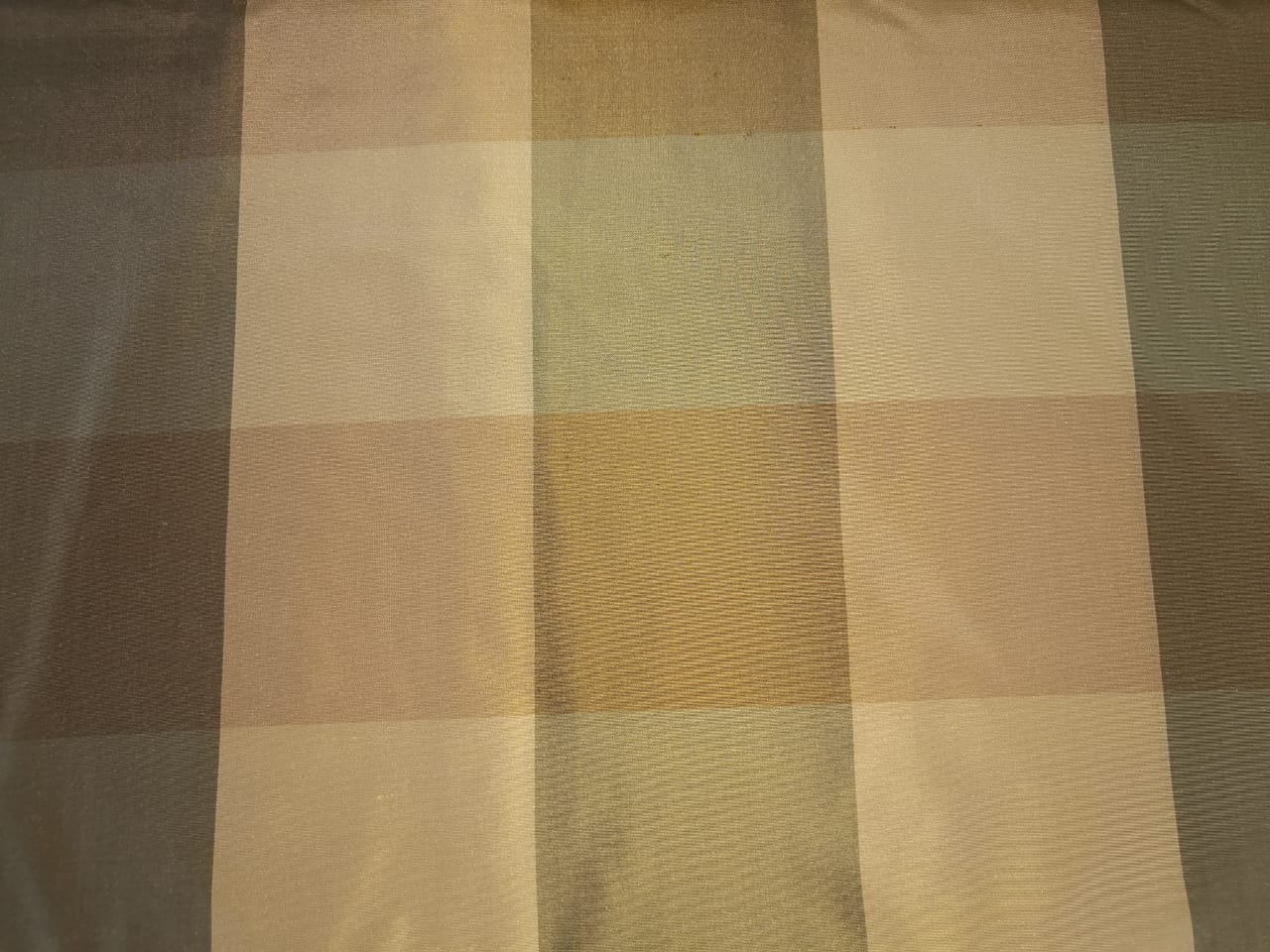100% PURE SILK TAFFETA FABRIC GREEN GOLD CREAM COLOR PLAIDS 54" wide TAFC12
