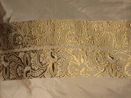 Mocha colour with gold paisleys jacquard design~SILK TAFFETA FABRIC 54