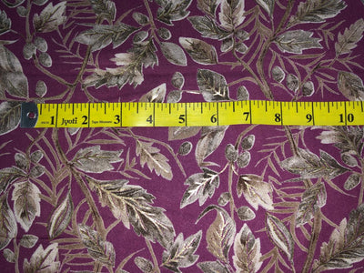 Premium Viscose Rayon fabric with foil print LEAFY VINES 58" wide available in TWO  colors WINE DEREK AND GREY