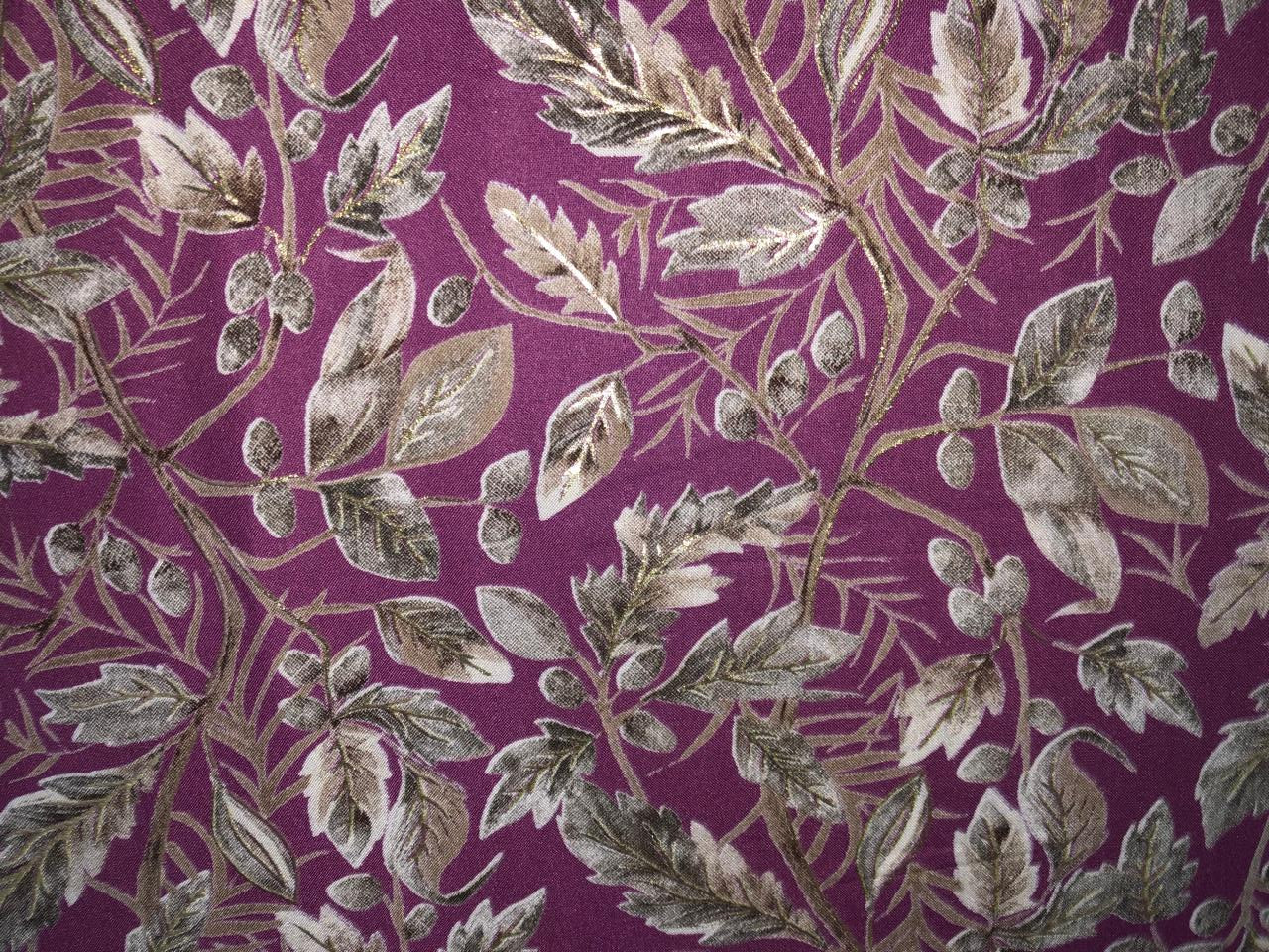 Premium Viscose Rayon fabric with foil print LEAFY VINES 58" wide available in TWO colors WINE DEREK AND GREY