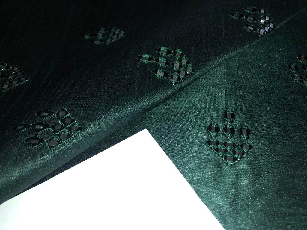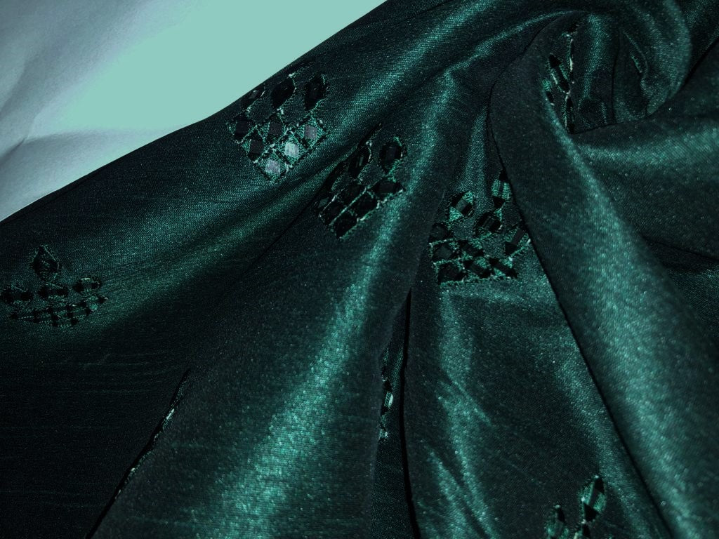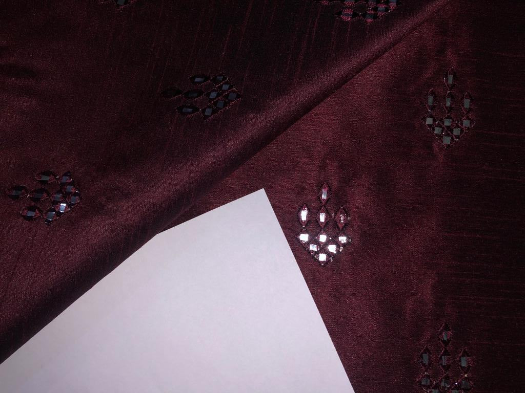 Silk Brocade fabric MIRROR WORK embroidery 50" wide BRO912[1/2]available in 2 colors [green and burgundy]