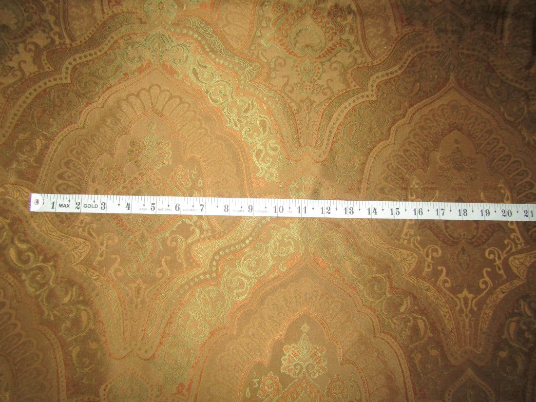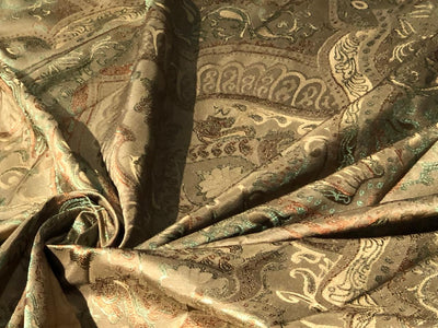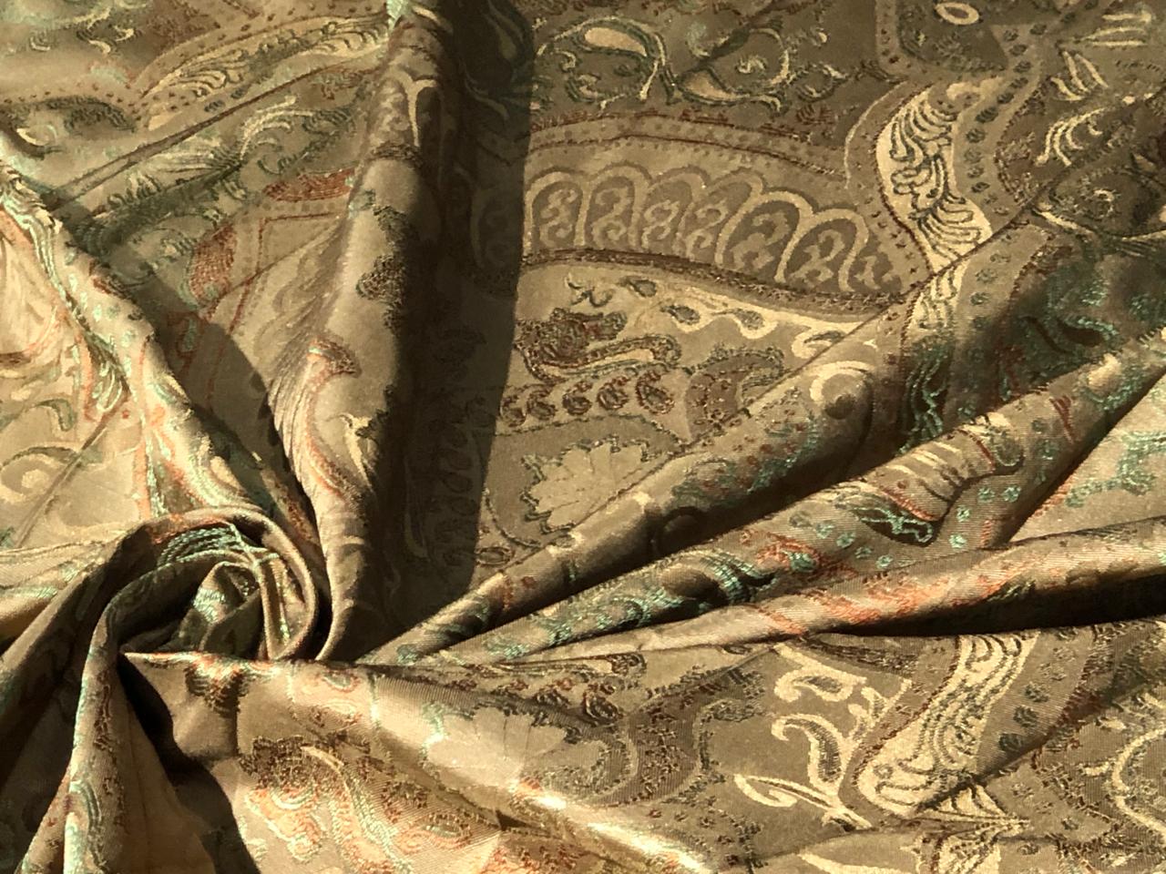 Silk taffeta jacquard fabric REVERSABLE GOLDEN BEIGE / GREEN AND MUSTARD DAMASK 54" WIDE TAFJ27C