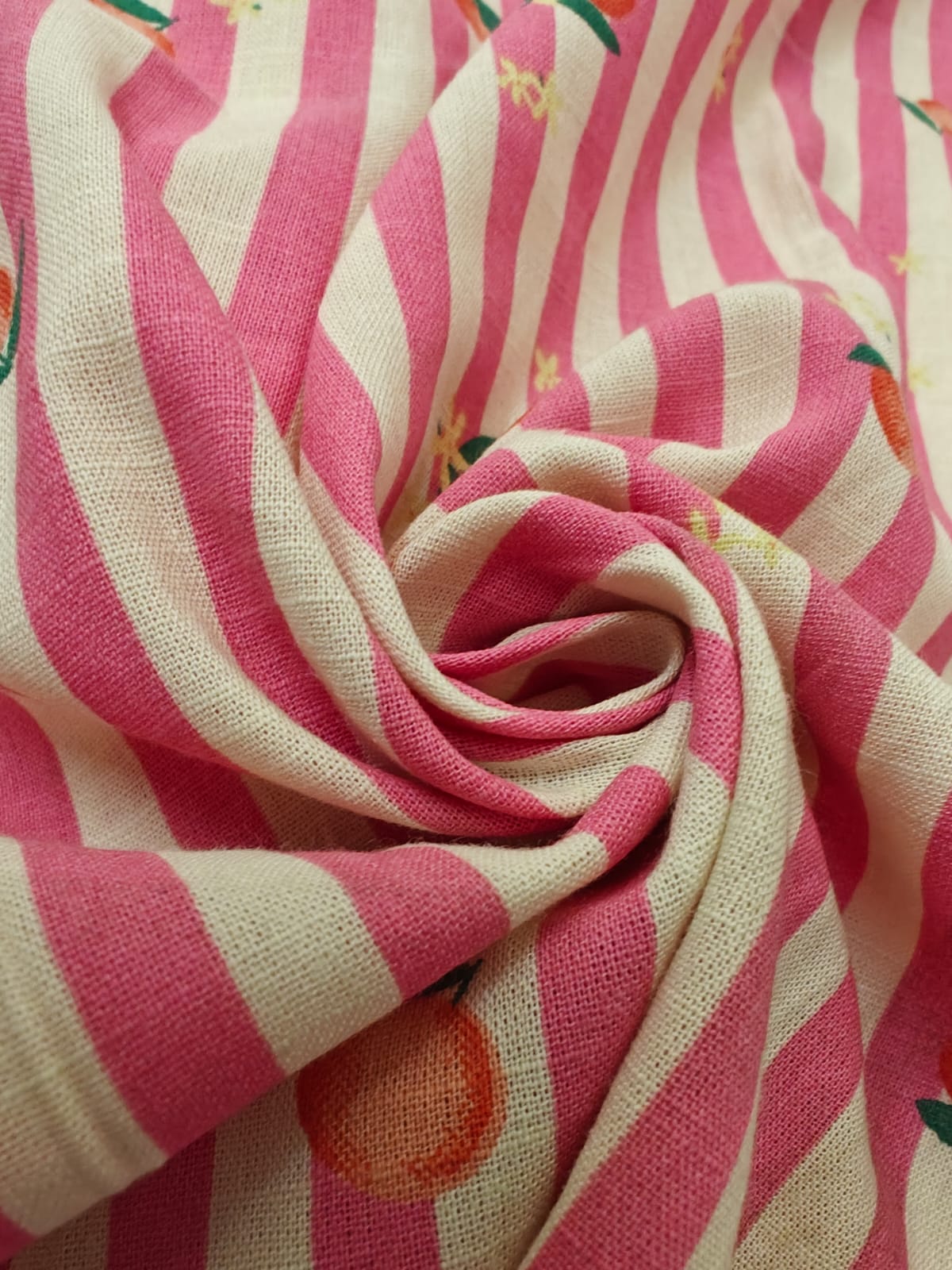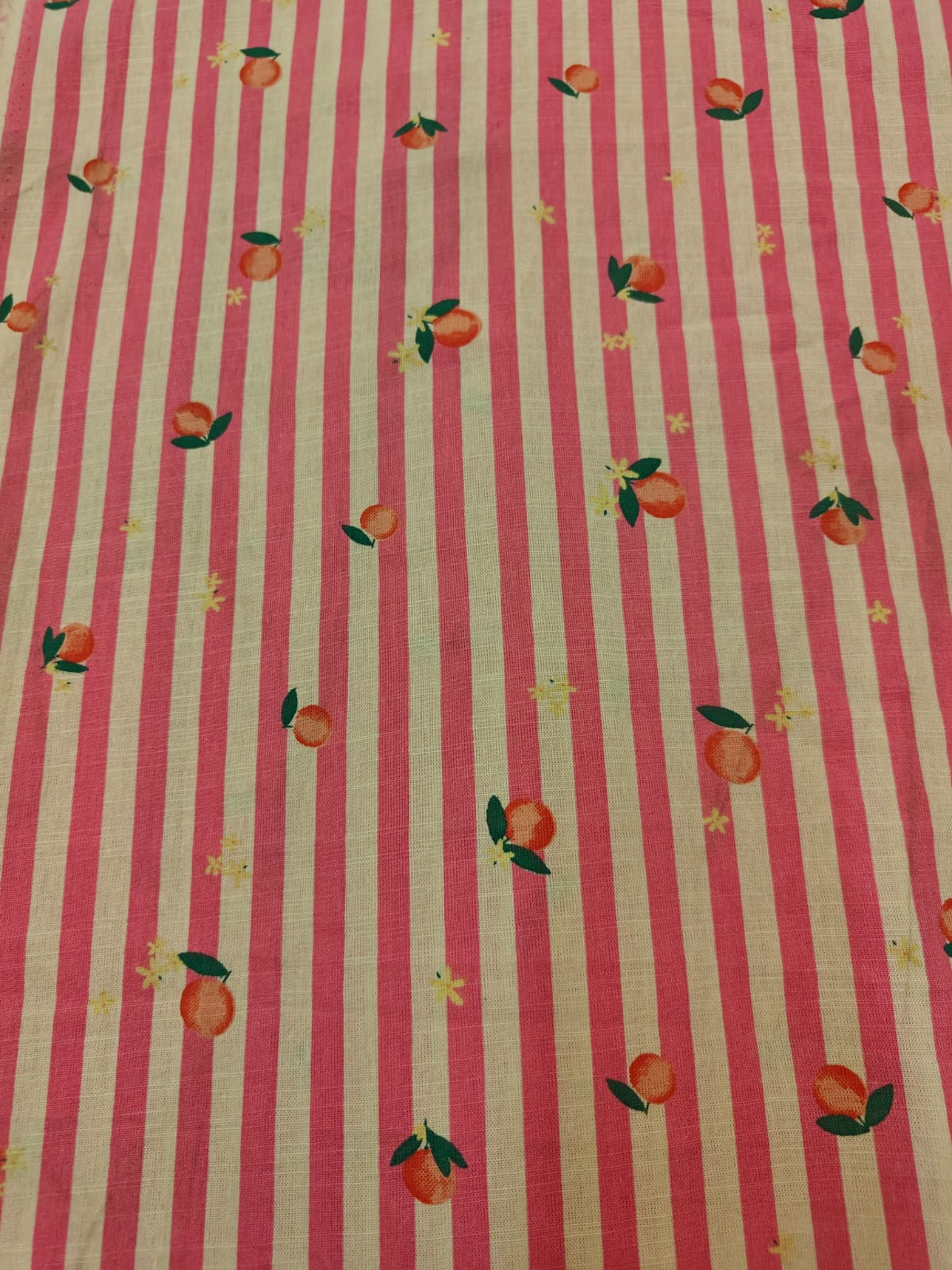 100% cotton poplin  print  ivory with pink stripe and cherry motif [20361]