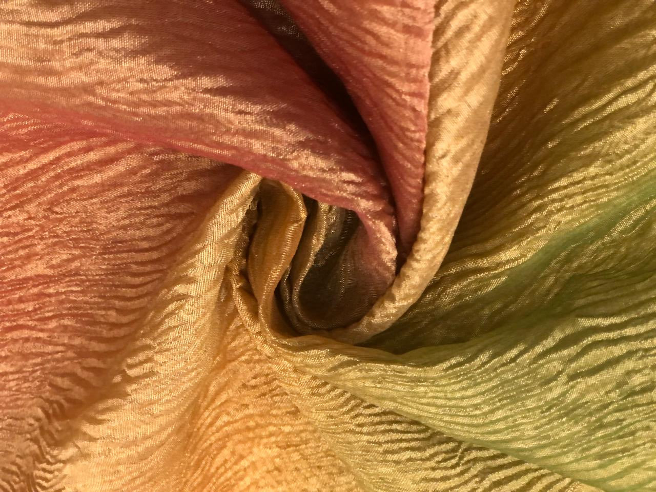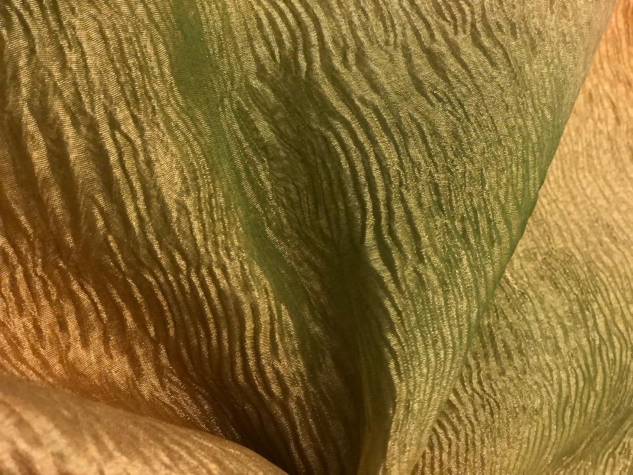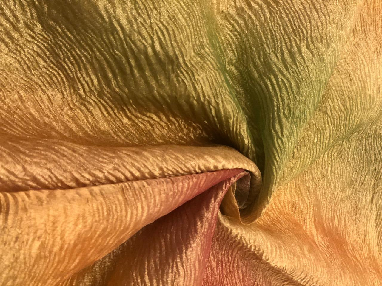 | Usage | Silk crushed tissue fabric is suitable for making dresses, skirts, tops, kurti, saree, dupatta, coat lining, veils, curtains, suits and more. |