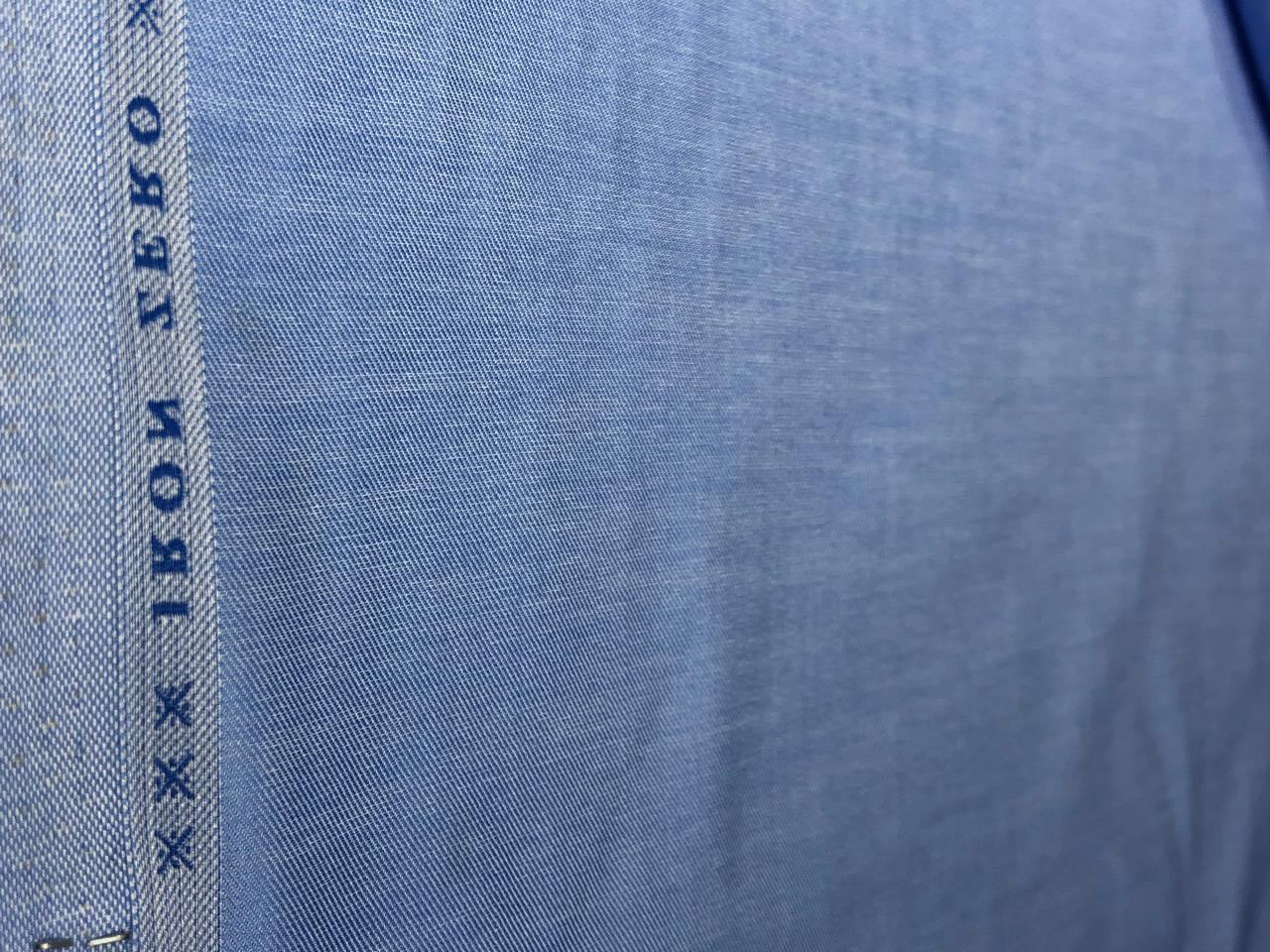 ? Iron Zero? is a fine Winkle Resistant Giza Cotton fabric . The unique treatment at the fiber level , not just at the surface discourages the Cotton Shirts made out of this fabric generating stubborn wrinkles . Also this treatment swells up the Cotton molecules , so the Cotton Shirts remain wrinkle free naturally and gets a soft and Silky feel too.