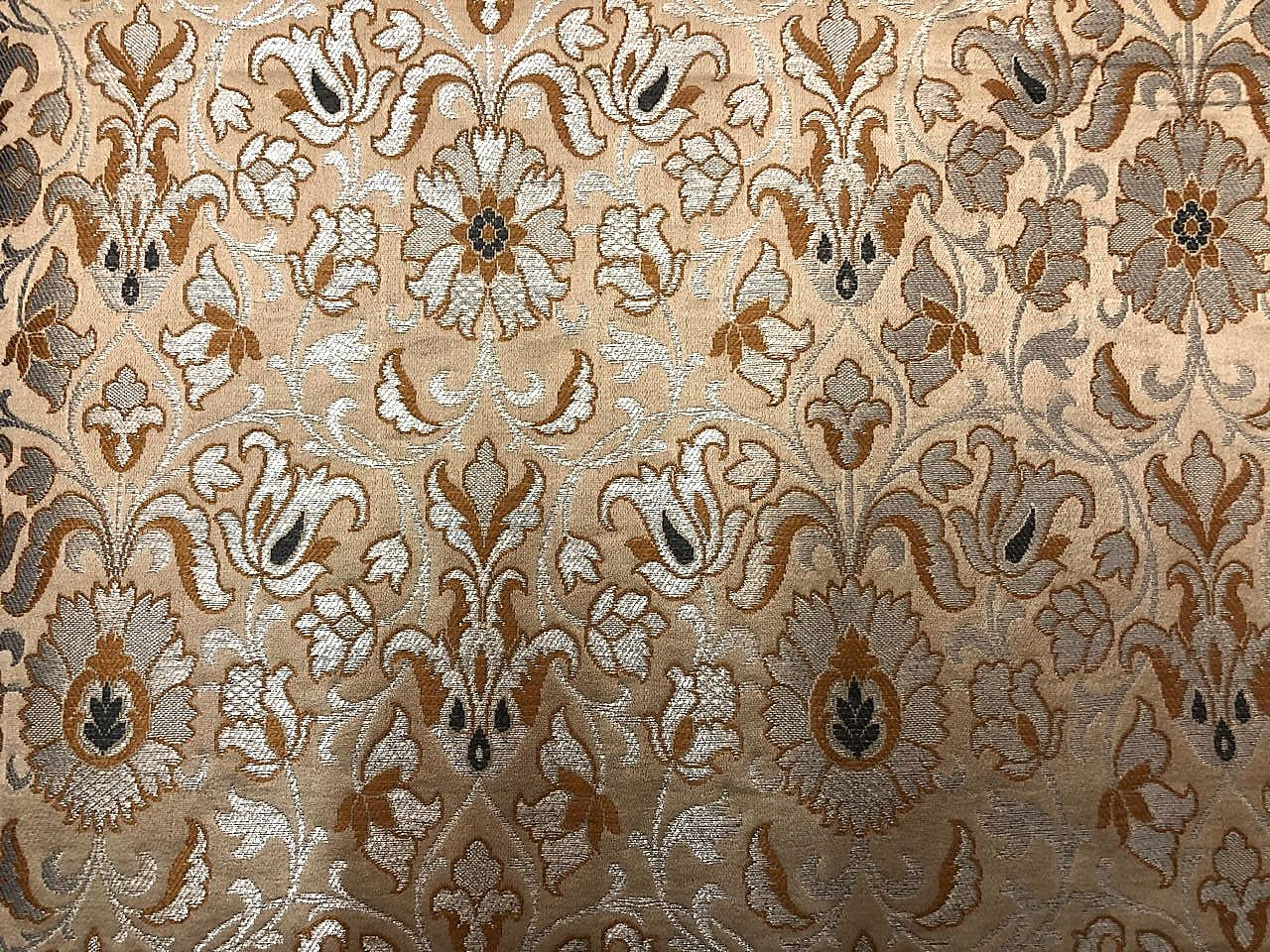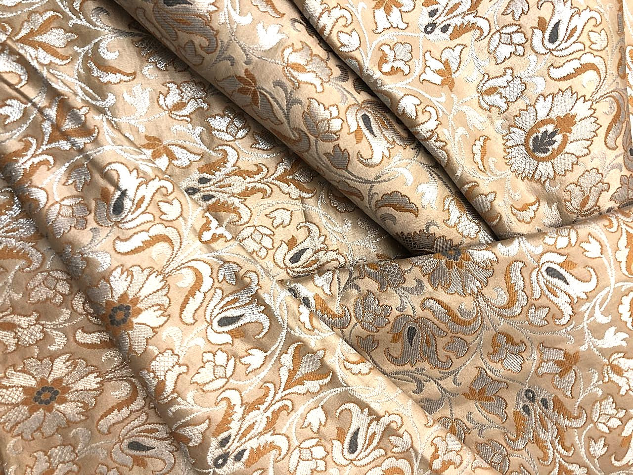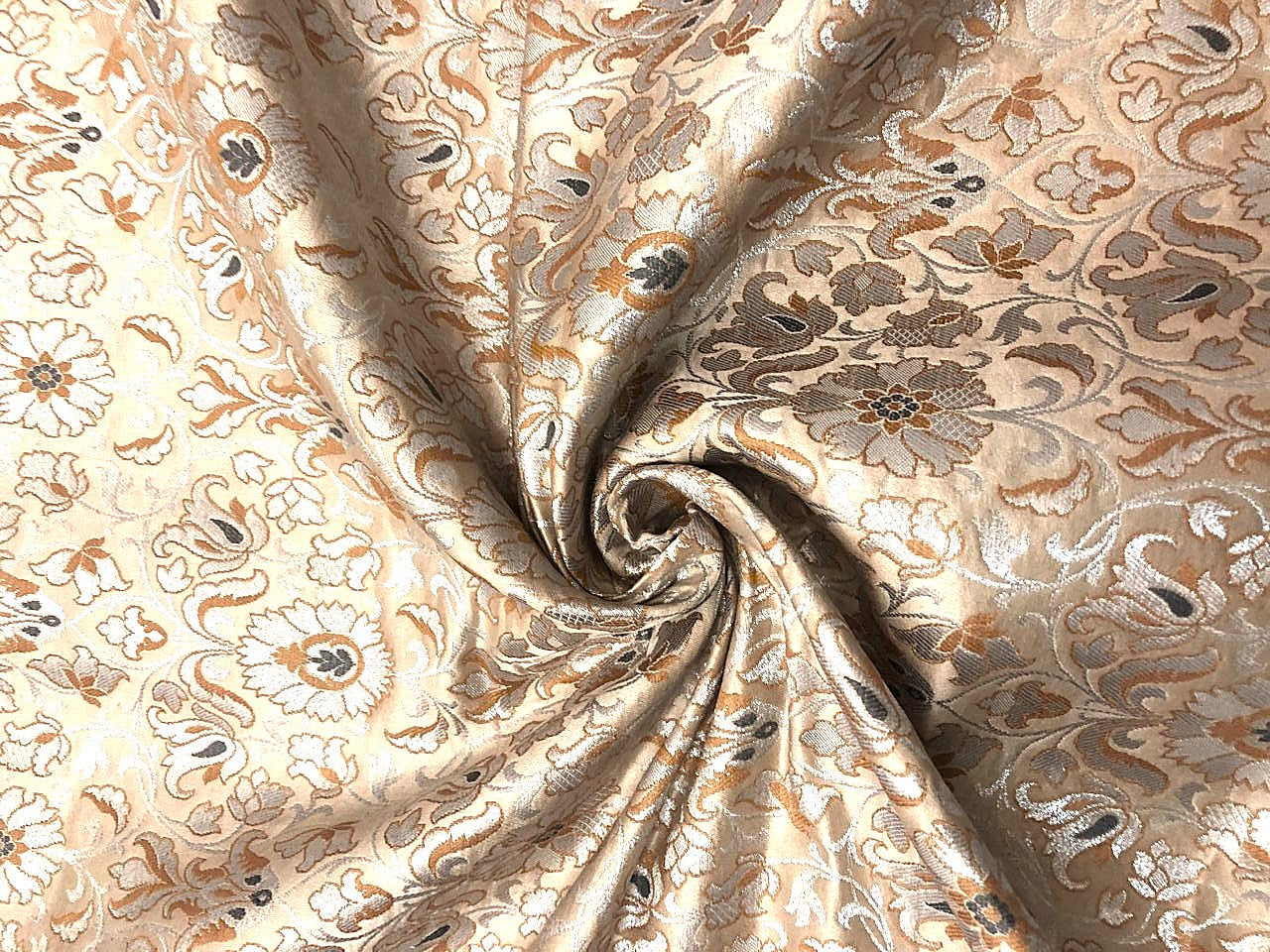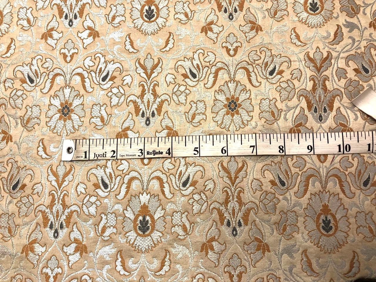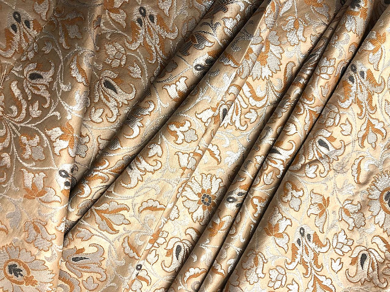 Silk Brocade fabric king khab ivory tusk with mustard and metallic silver floral jacquard 44" wide BRO1125[1]