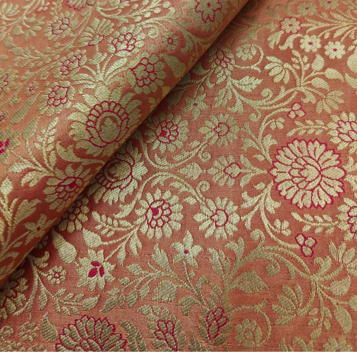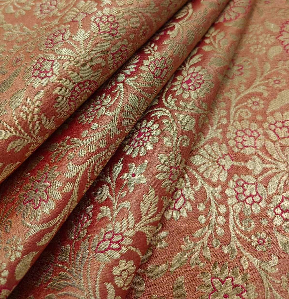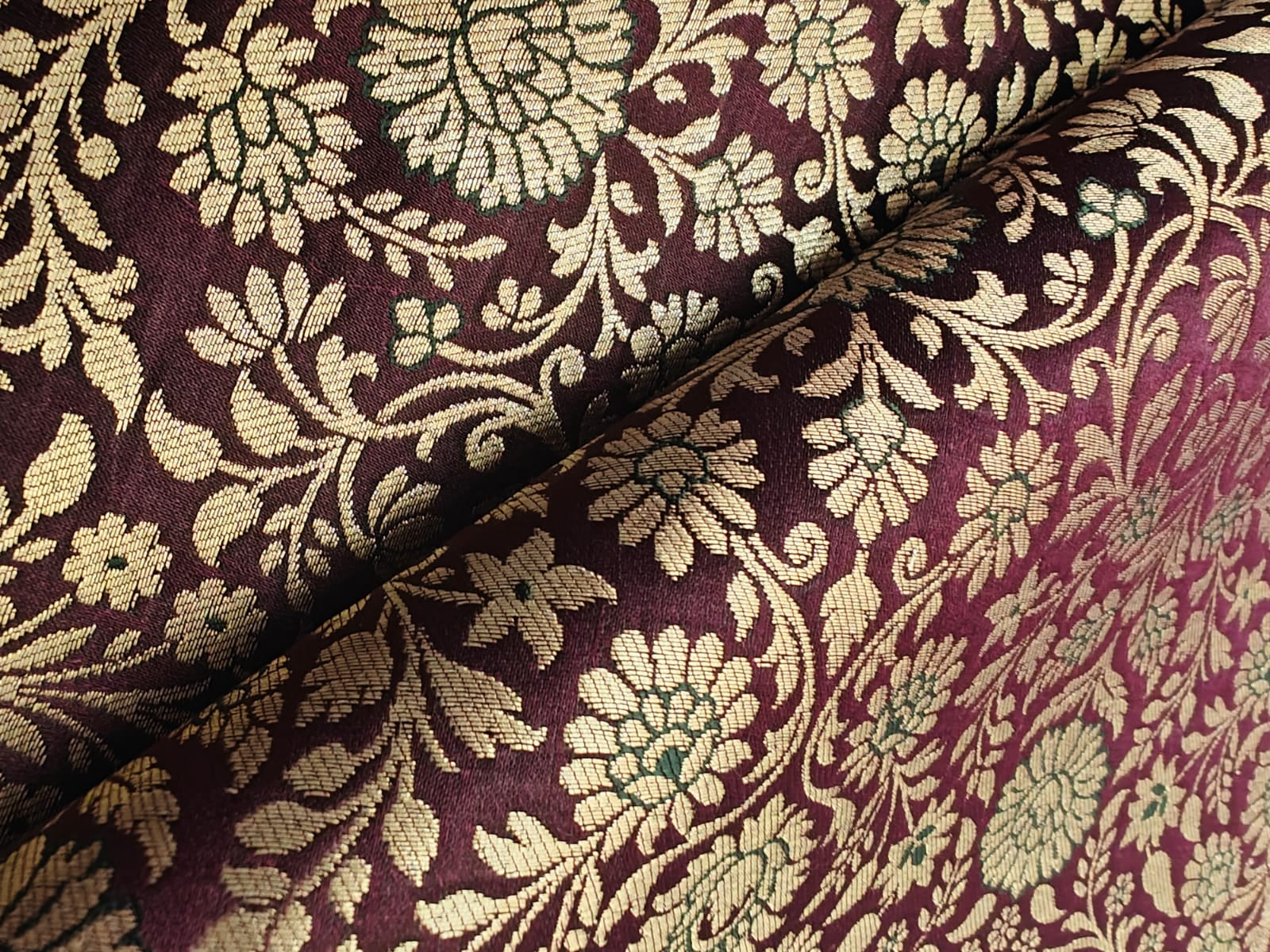 Silk Brocade fabric king khab [kings dream] available in 7 colors burgundy/green/mango/teal/red/peach and burgundy BRO1158