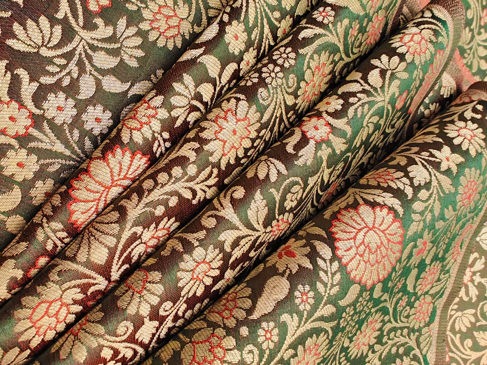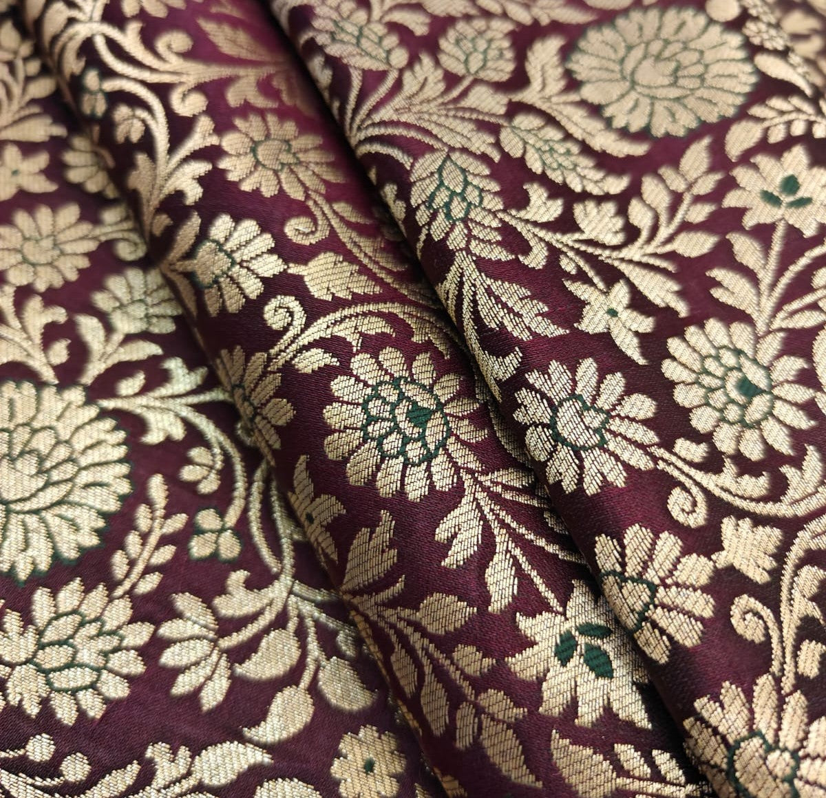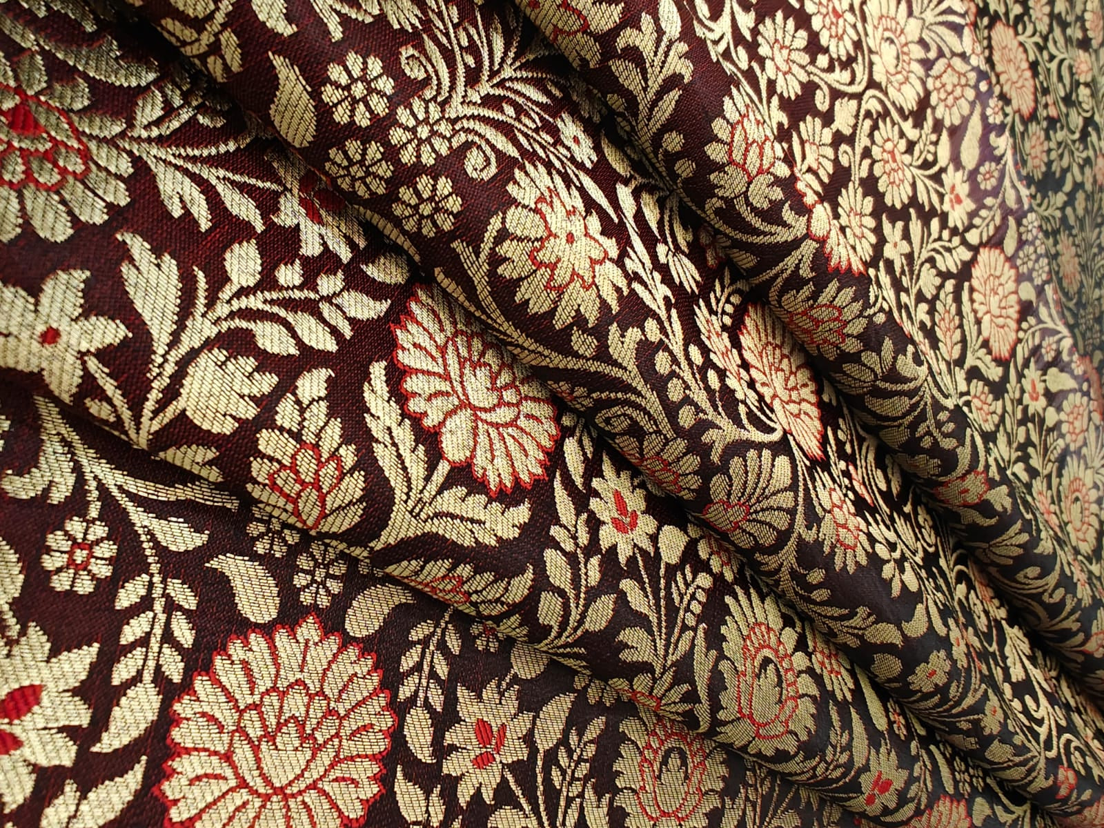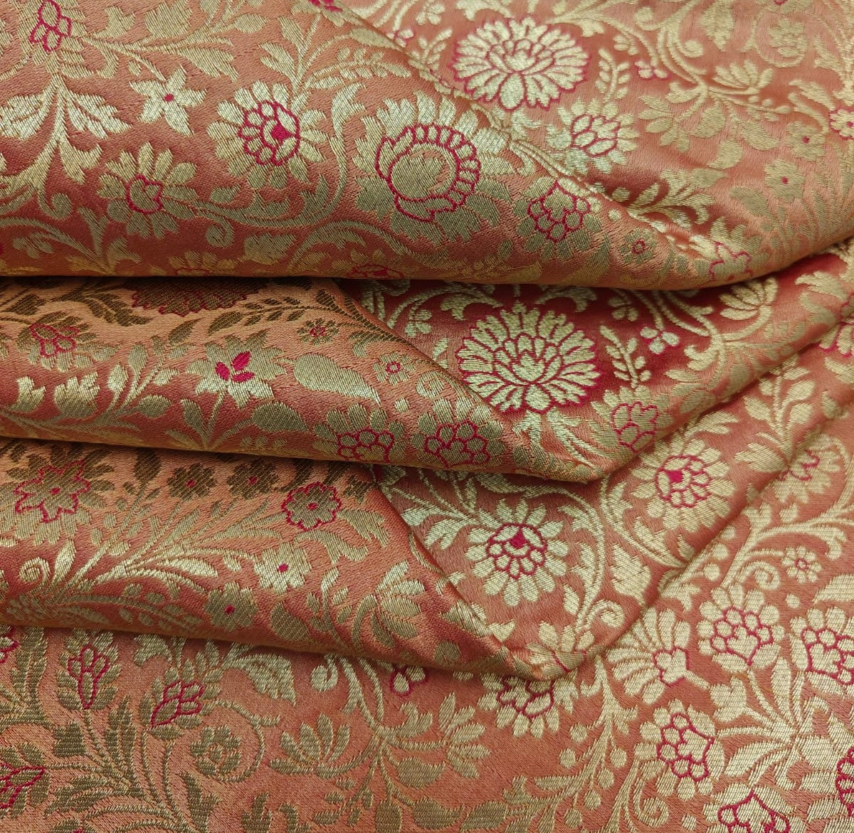 Silk Brocade fabric king khab [kings dream] available in 7 colors burgundy/green/mango/teal/red/peach and burgundy BRO1158
