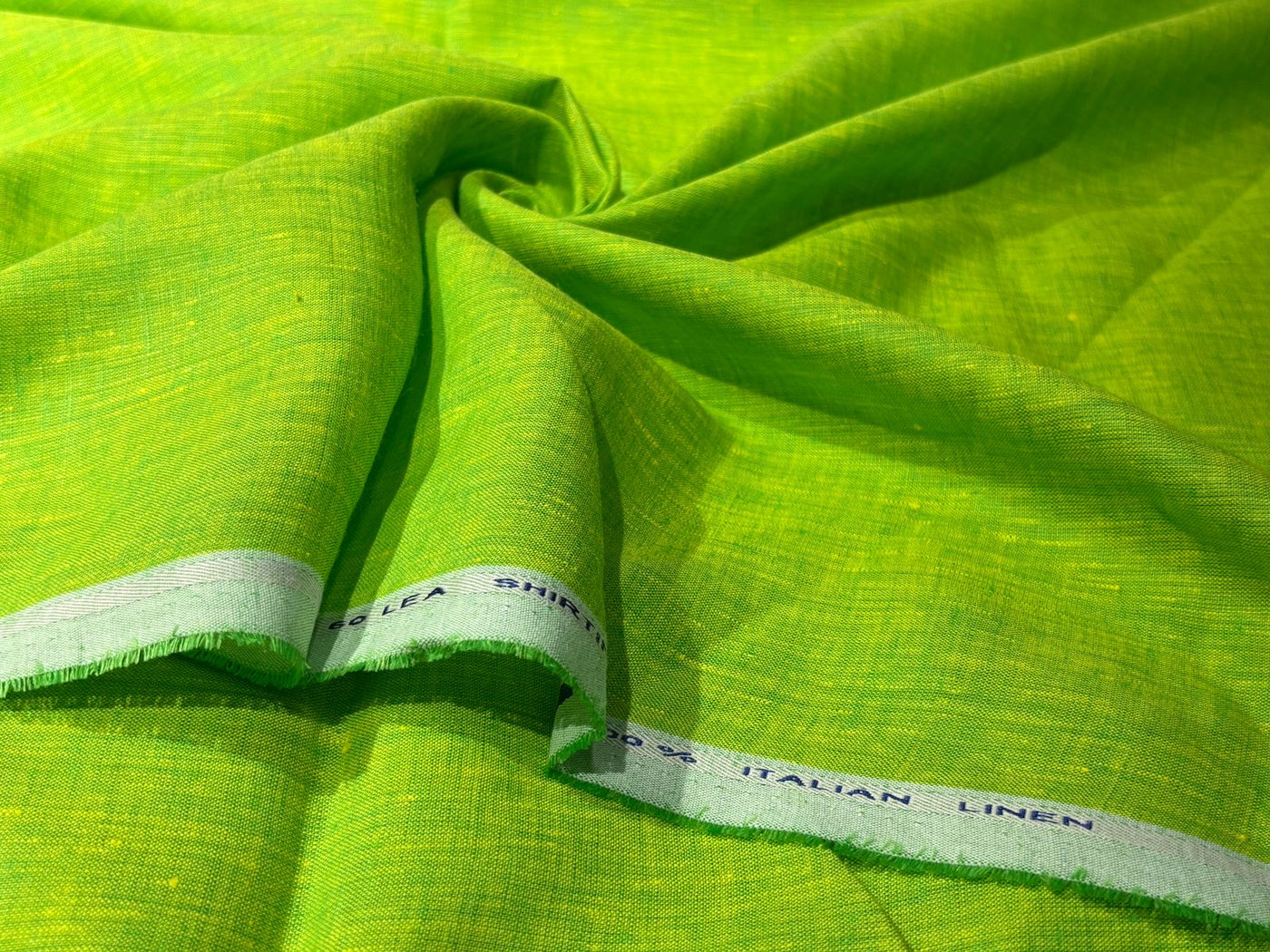 100% linen 60s lea Linen fabric  58" wide available in 3 colors blue/lemon yellow and green x yellow