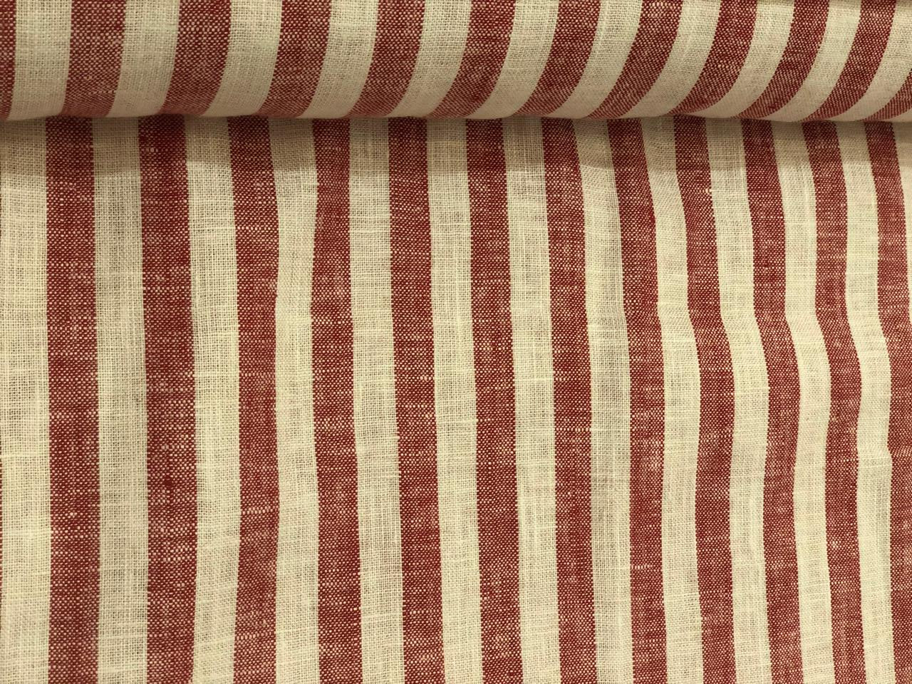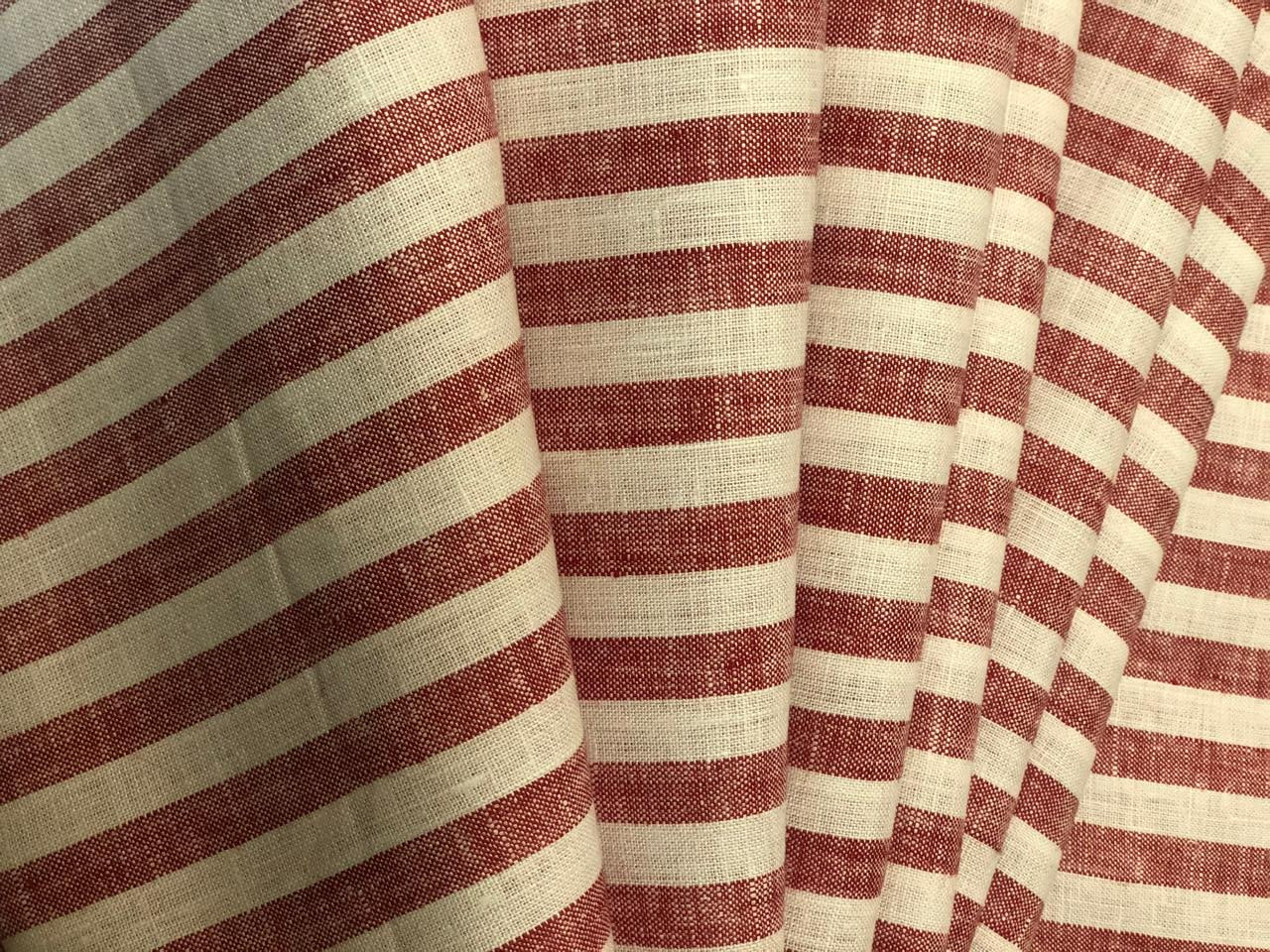 100% Linen 40'S LEA stripes red and white amazing for shirting and summer wear [19008]