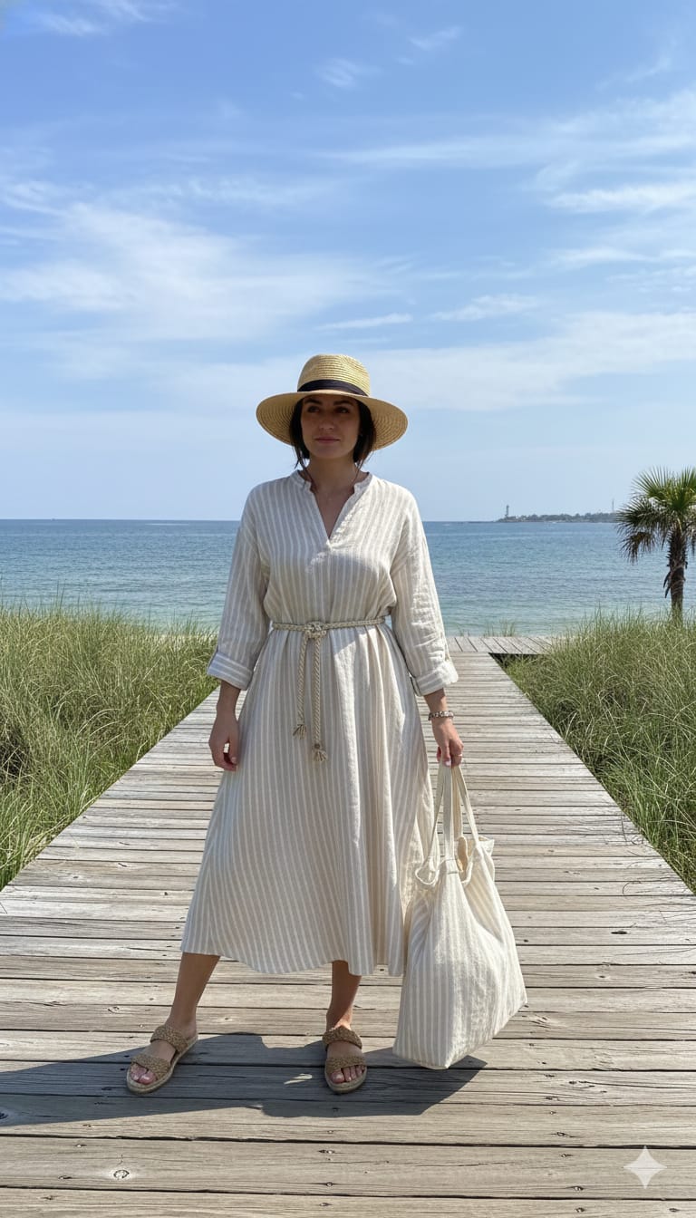 Our 60% linen– 40%cotton stripe dress(for illustration purpose)is designed for slow days, soft moments, and timeless comfort 🤍