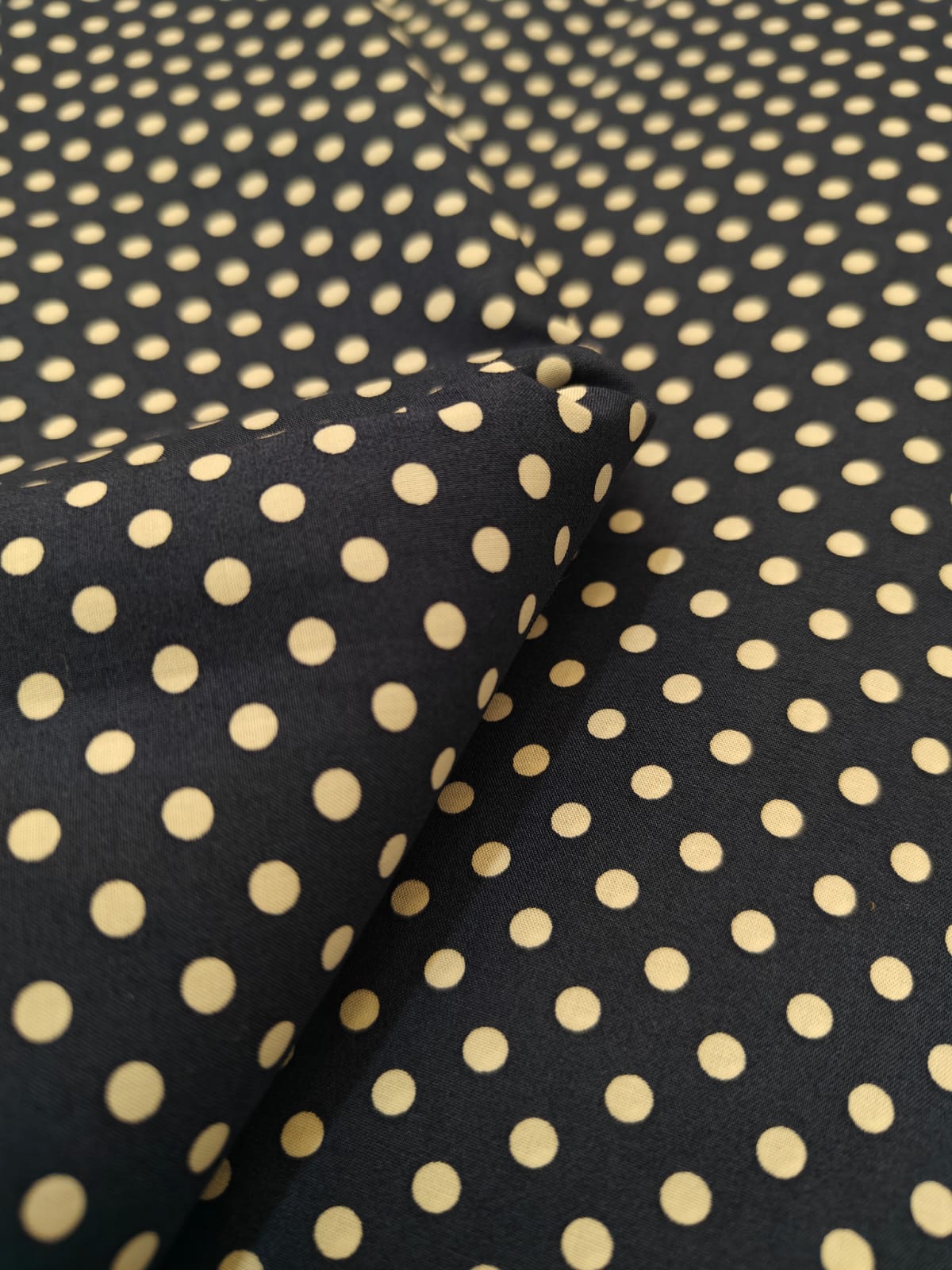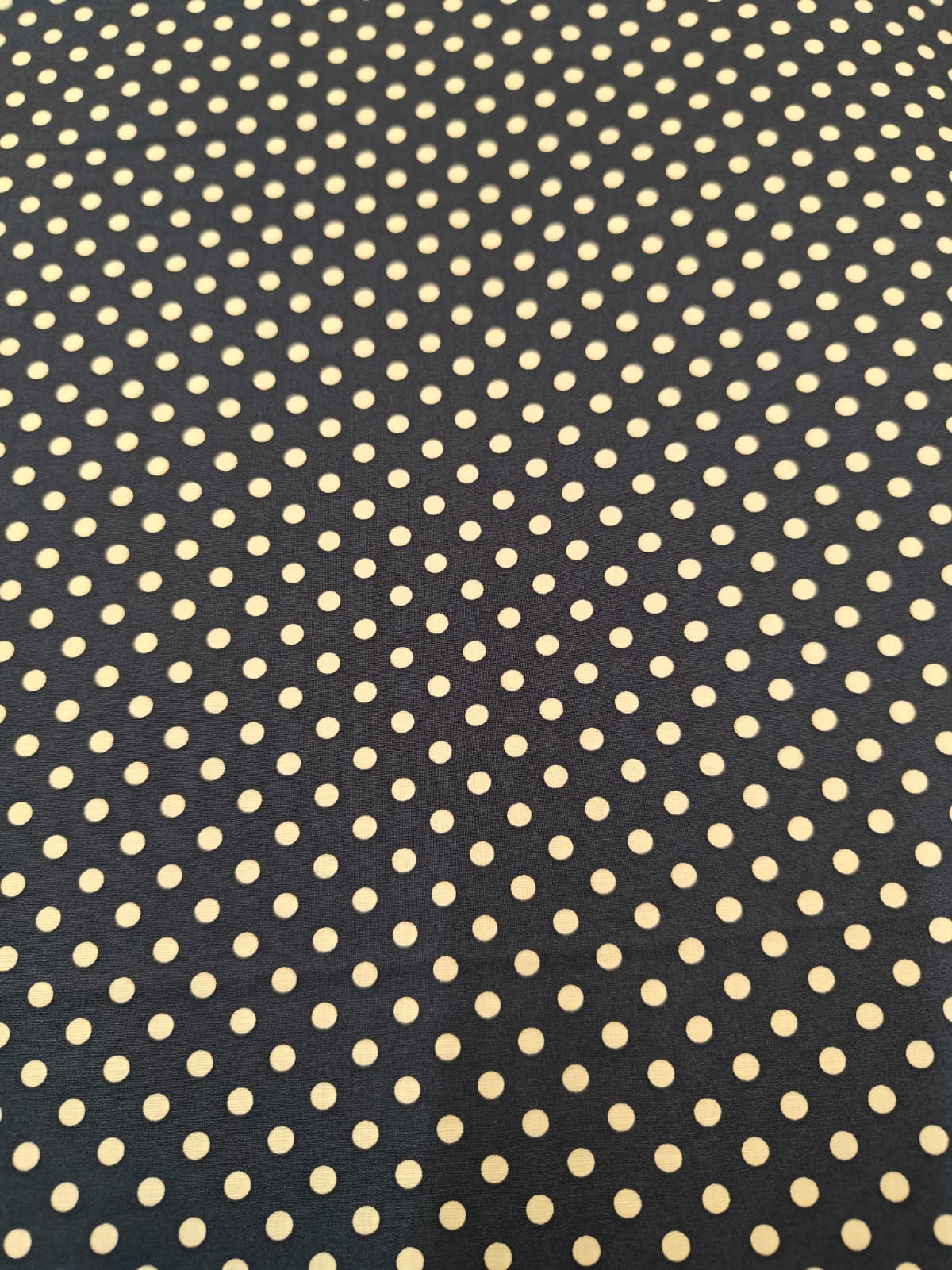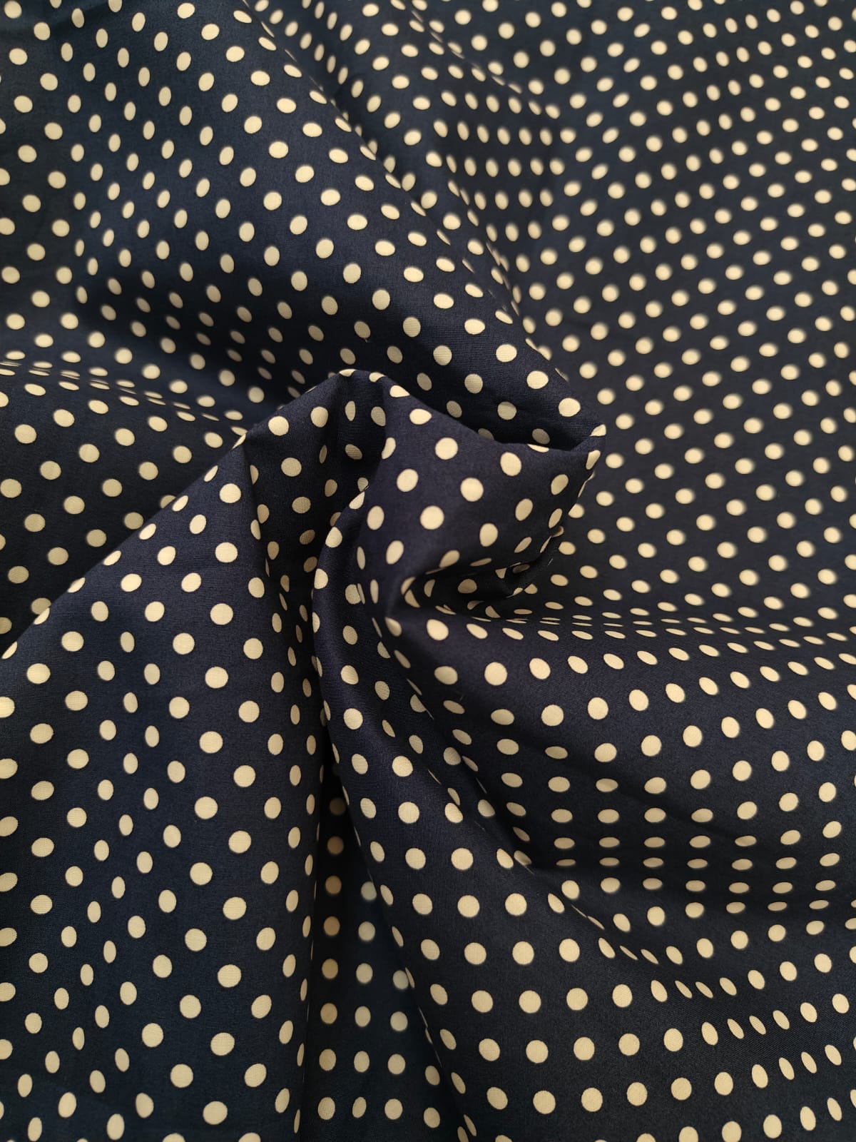 100% cotton poplin peach finish fabric navy blue with white dots [20433]